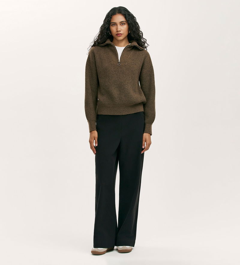 Maddy is a knitted quarter zip jumper that combines casual ease with a sporty edge. Featuring a funnel neck with a zip opening, she offers both warmth and versatility, while long sleeves and a relaxed fit make her an easy layering piece. Effortlessly adaptable, Maddy works well for laid-back weekends and adds a contemporary touch to everyday looks, making her a must-have quarter zip jumper for women.
