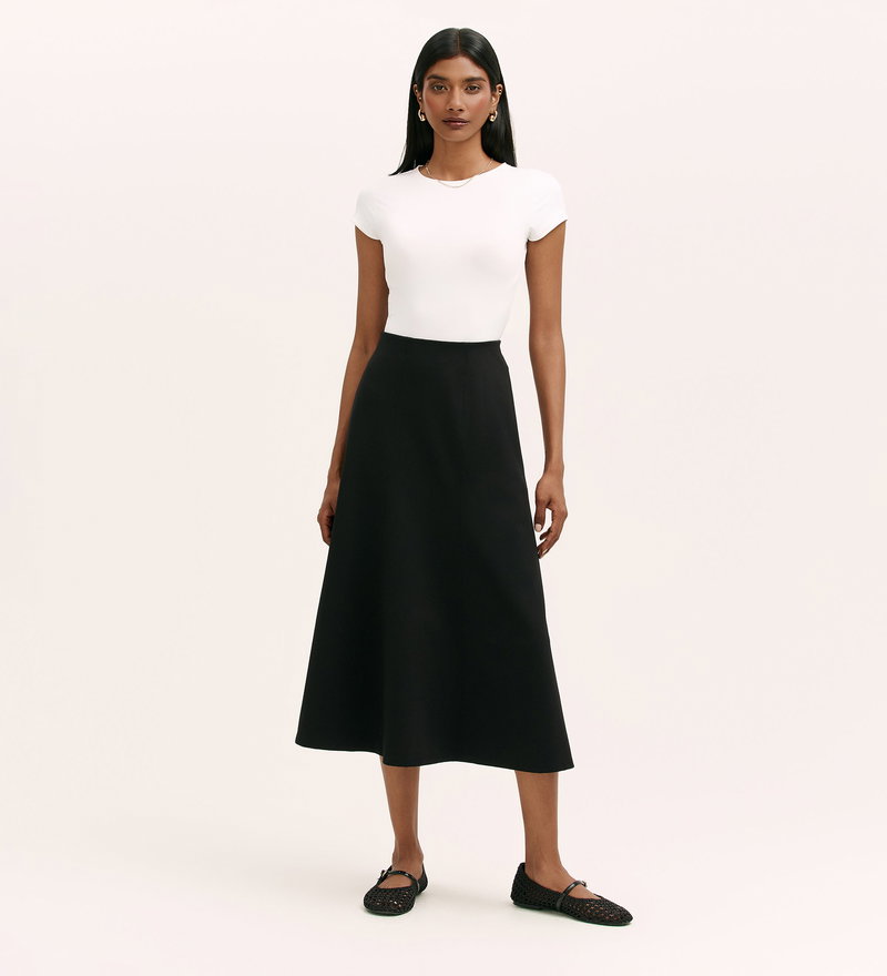 Mae Black Ponte Jersey Midi Skirt
