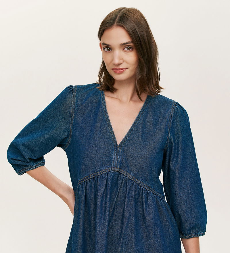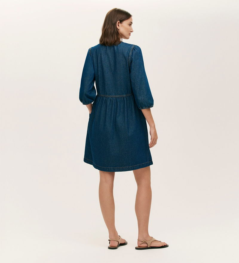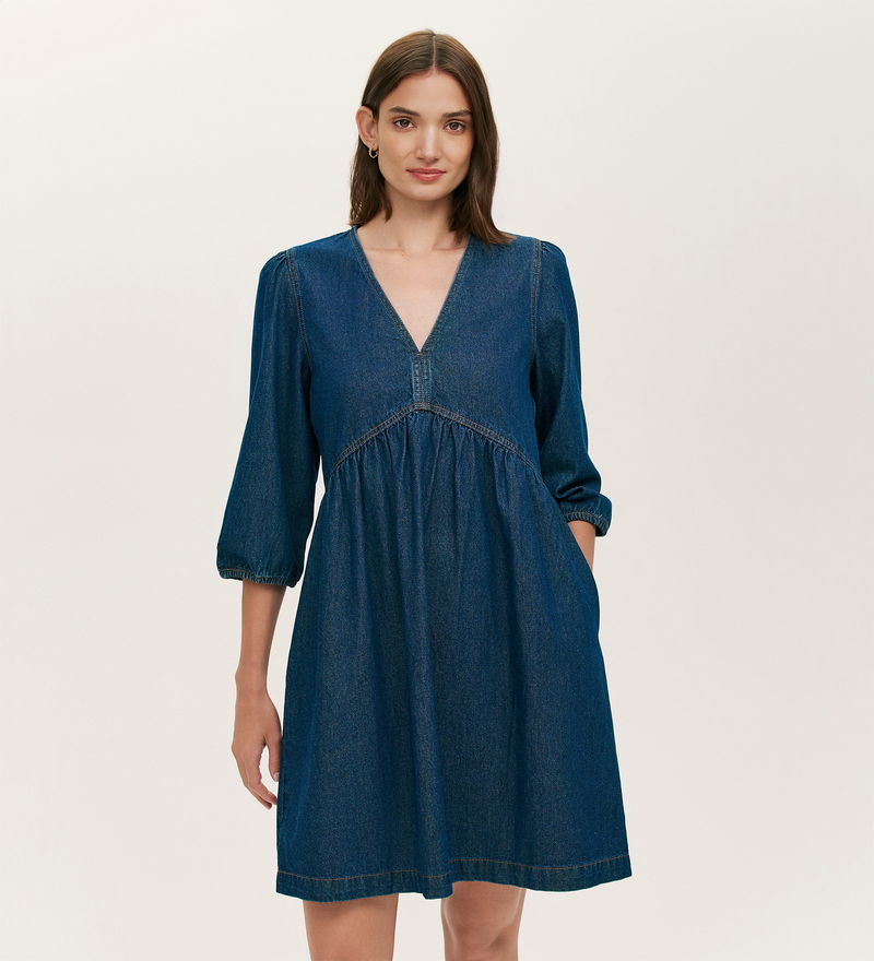 Marilyn is a denim mini dress with timeless appeal. Featuring a feminine V-neckline and three-quarter sleeves with elasticated cuffs, she's cut to a relaxed and flattering fit for all-day comfort.