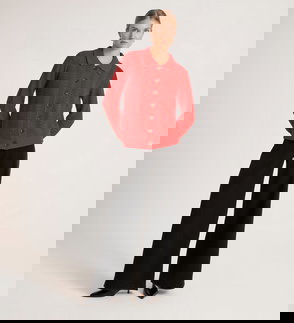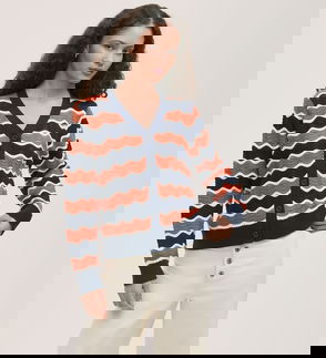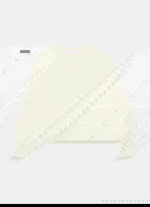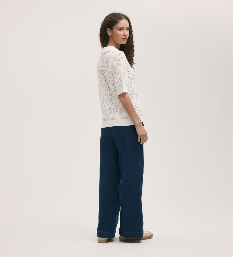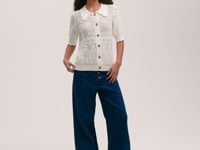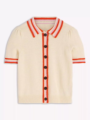 We love this scallop ribbed detailing on the collar and cuffs of Marlowe, our cream button-up crochet cardigan. She has short sleeves and a ribbed detail hemline.