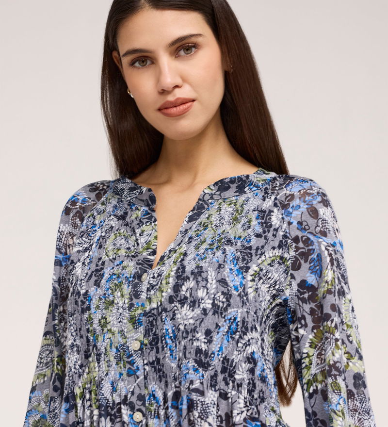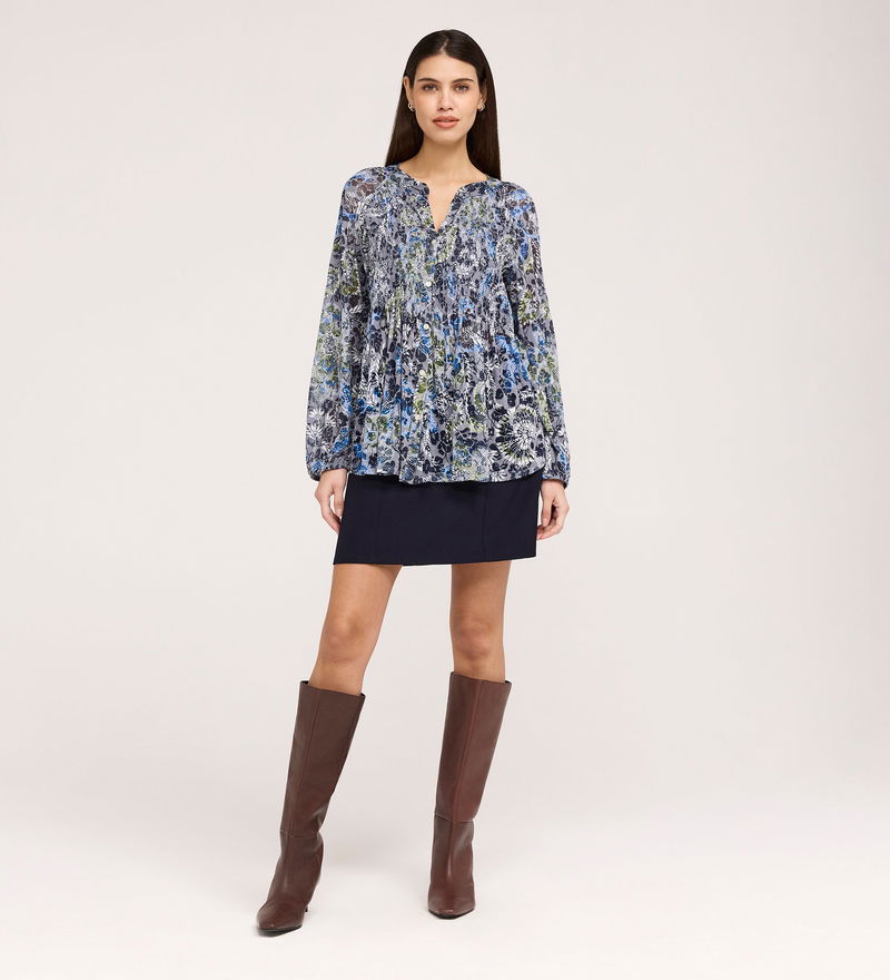 The Martha Blouse is a reliable choice for those who appreciate subtle design details in their daily wardrobe. Defined by its textured shirring on the body, this top offers a comfortable, flexible fit that leads into a flattering flare hem. The addition of a flat rounded collar gives the piece a neat, finished look, while the full length sleeves with elasticated cuffs allow for easy, adjustable styling. It is a simple yet thoughtful piece that pairs effortlessly with tailored trousers or casual denim.