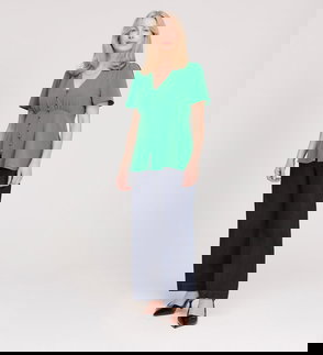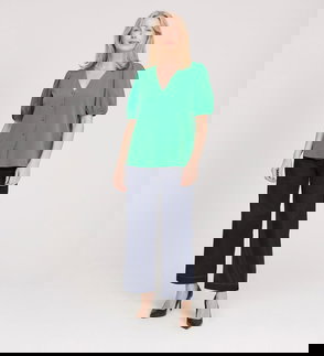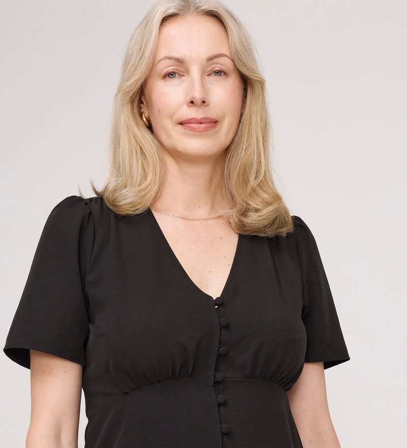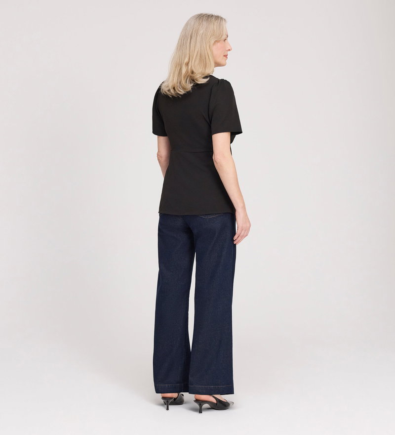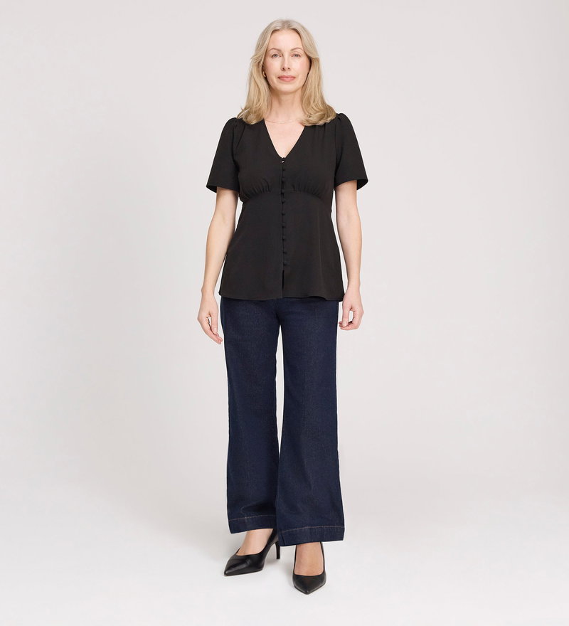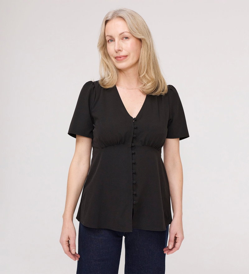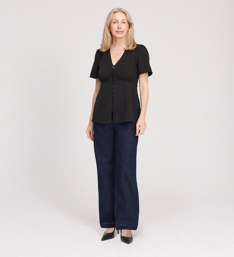 Maryam Black Button Up V-Neck Short Sleeve Top