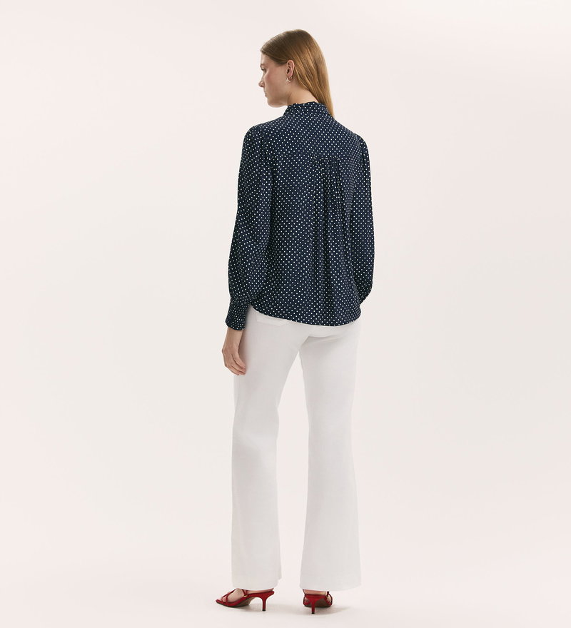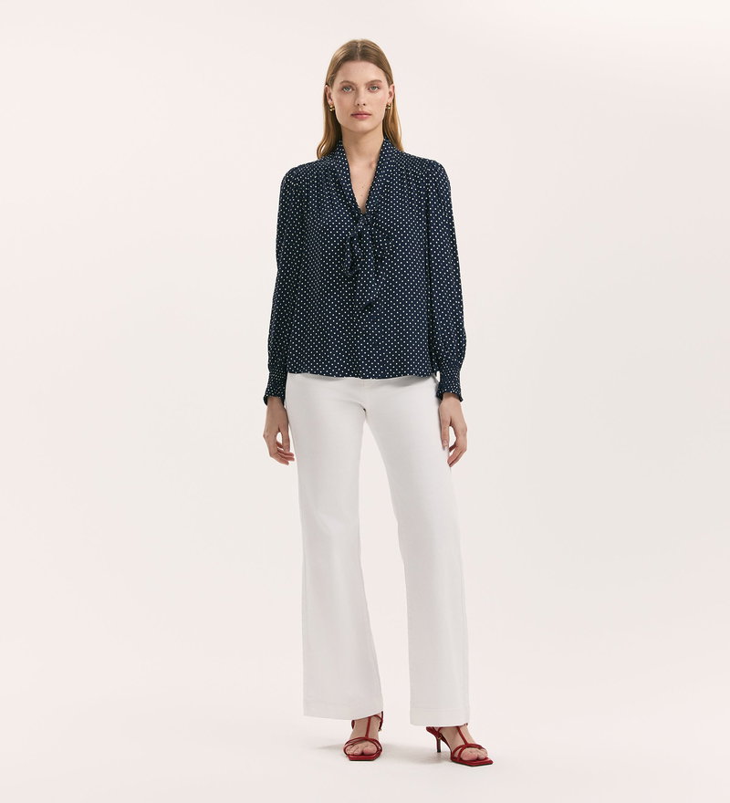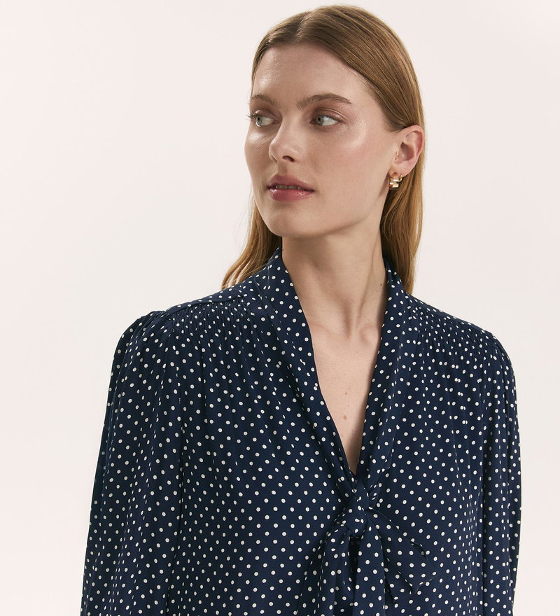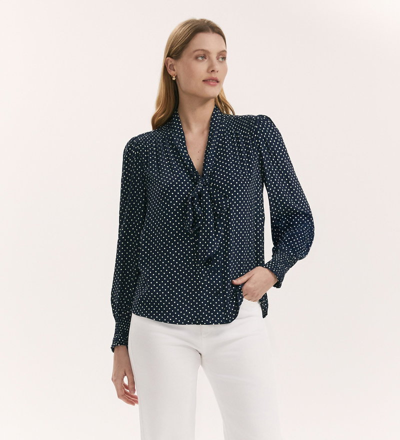 Mavis Navy Polka Dot Pussy Bow Crepe Blouse