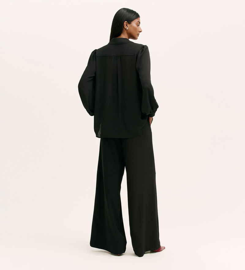Melina is a softly tailored relaxed fit shirt, crafted from our lightweight woven crepe. She features a rounded collar and full button-through front for a timeless look. Gentle gathers at the front and back yokes add subtle volume, while long sleeves with buttoned cuffs complete the refined silhouette. Easy to wear and effortlessly elegant, Milena transitions seamlessly from desk to off-duty.