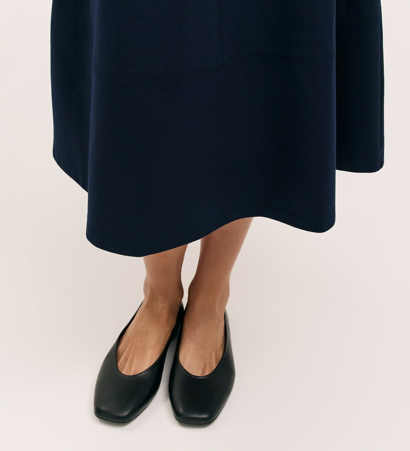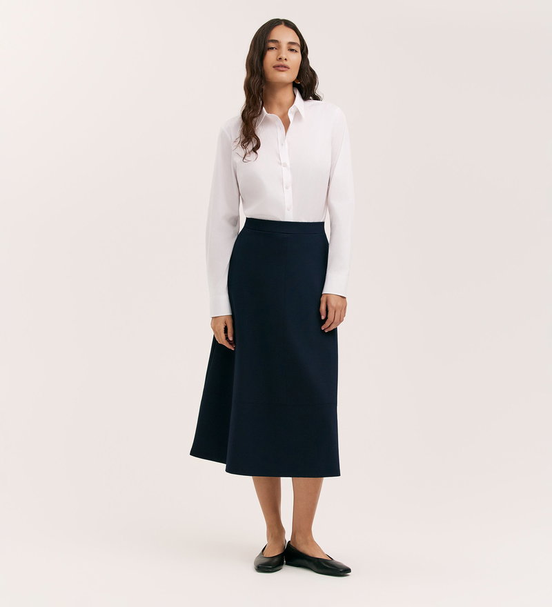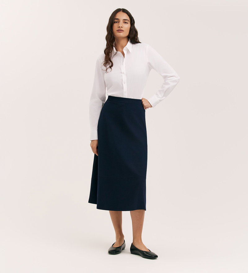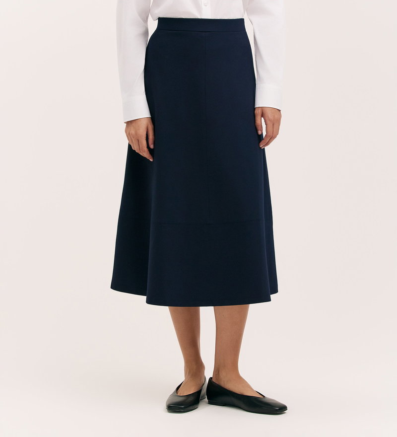 Mikia Navy Ponte Jersey Midi Skirt