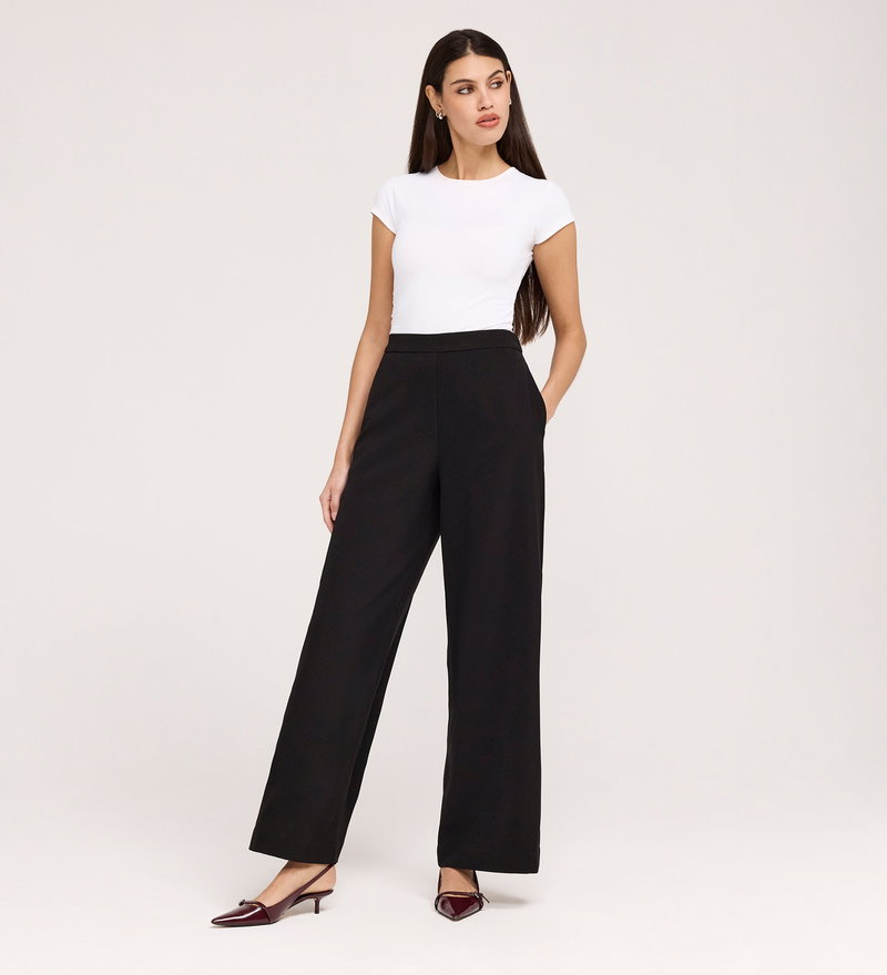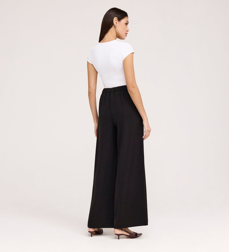 Nat Black Gaberdine Twill Wide Leg Trousers