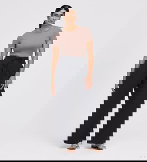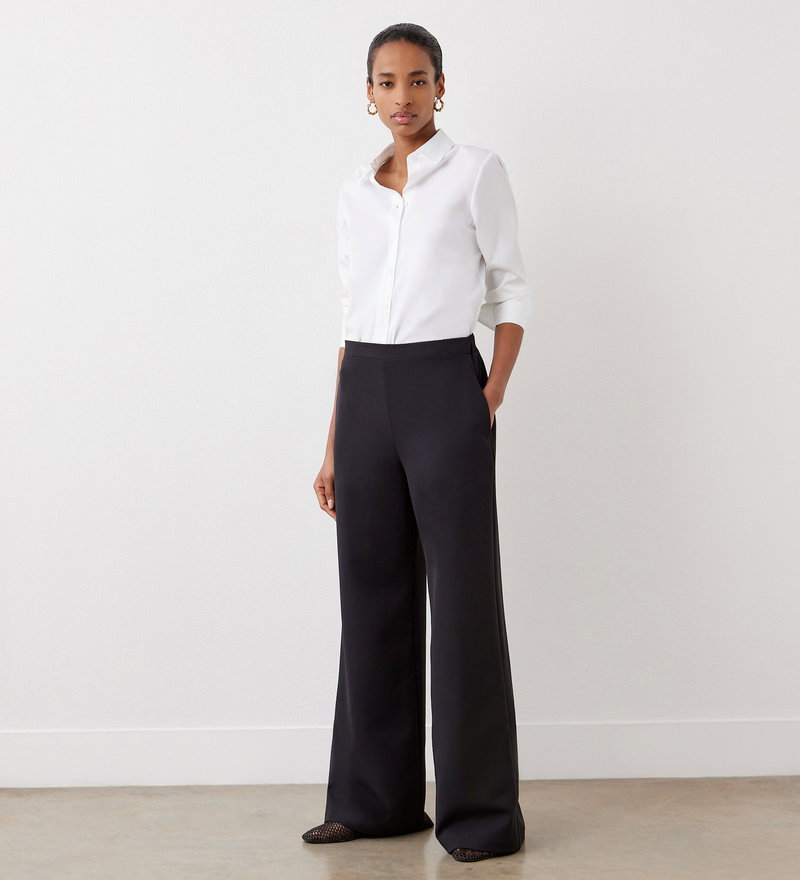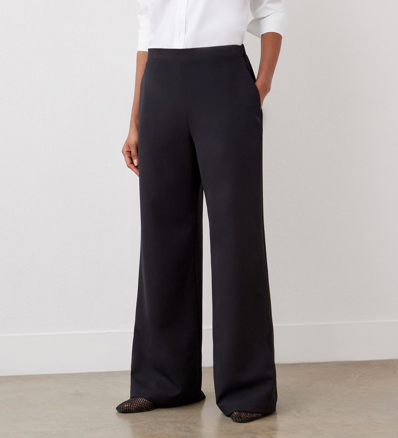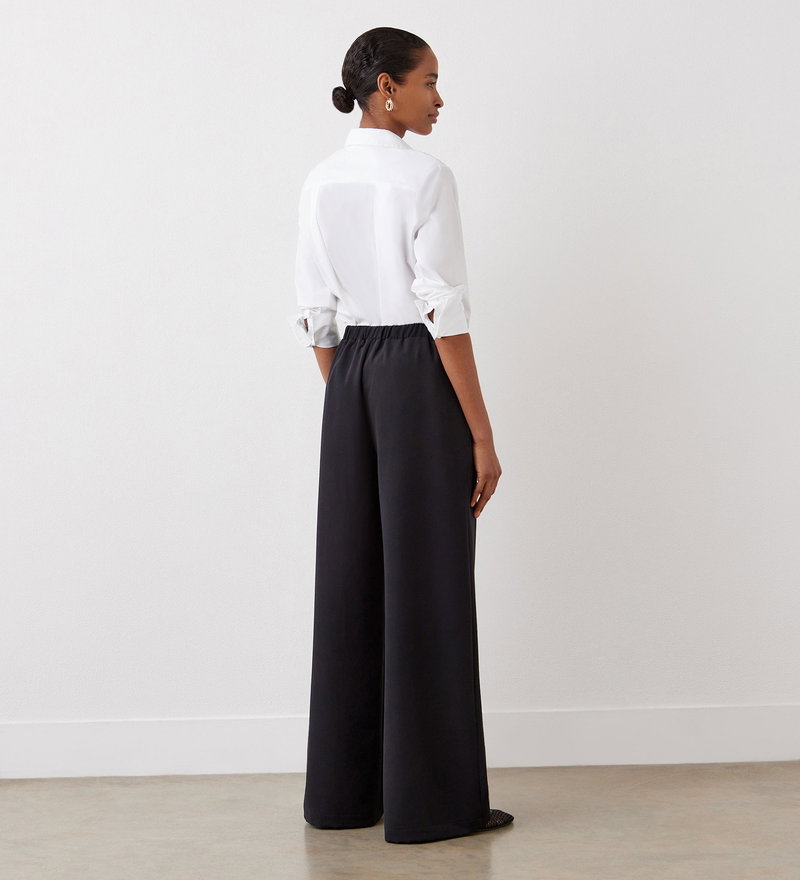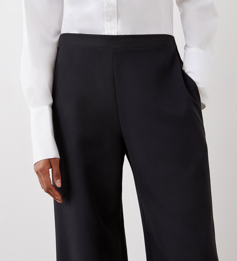 Nat Black Satin Back Crepe Wide Leg Trousers