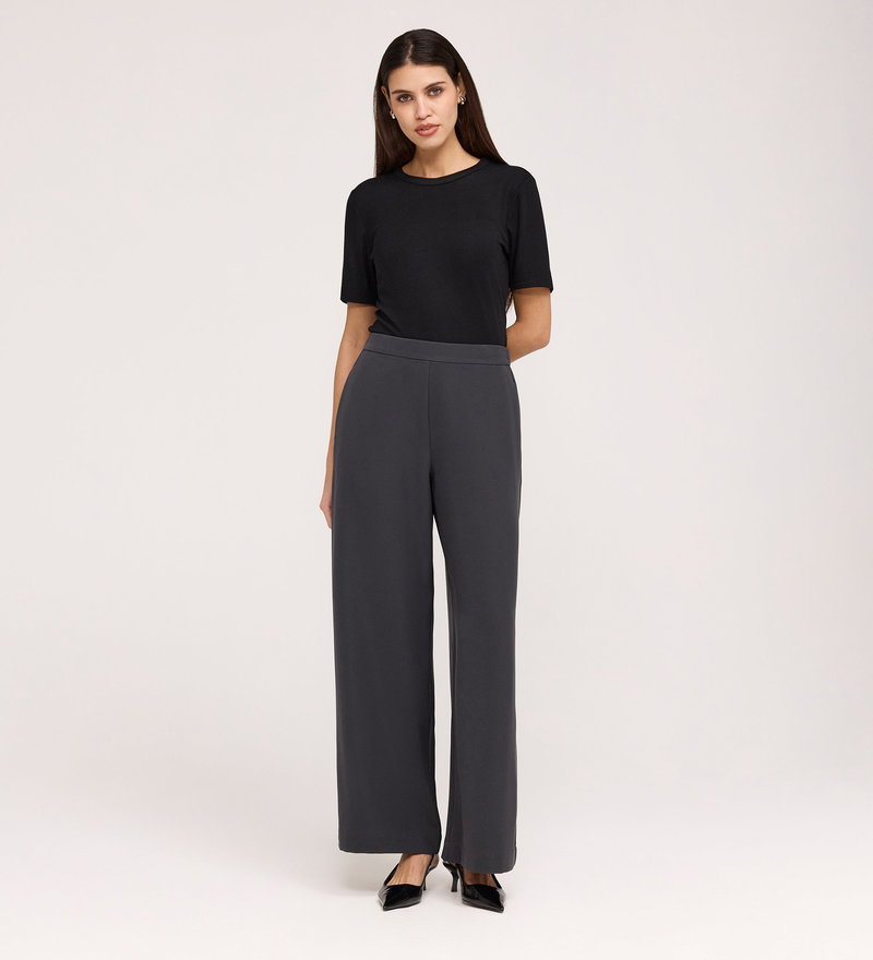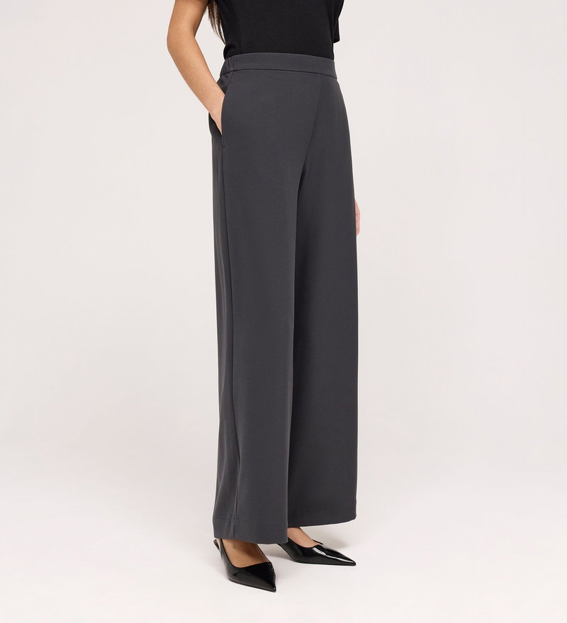 Nat Charcoal Gaberdine Twill Wide Leg Trousers