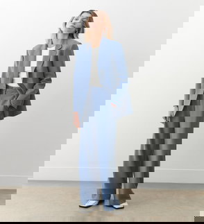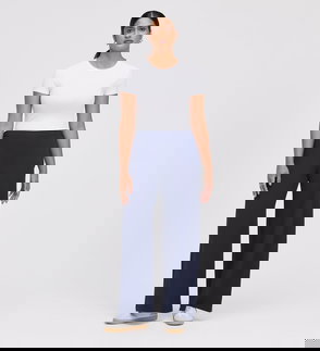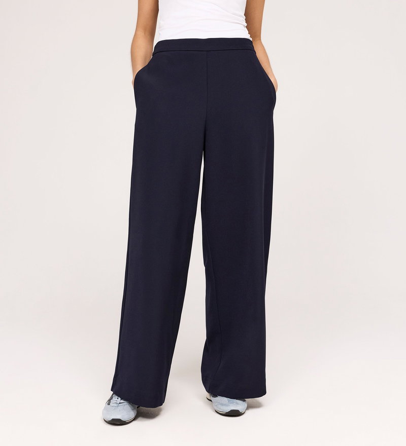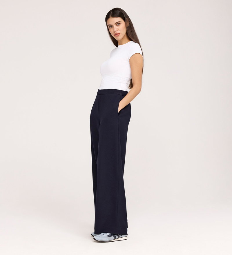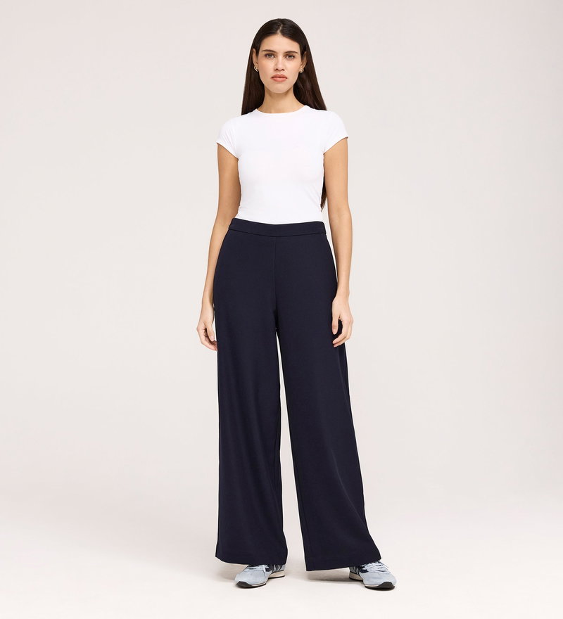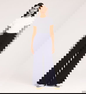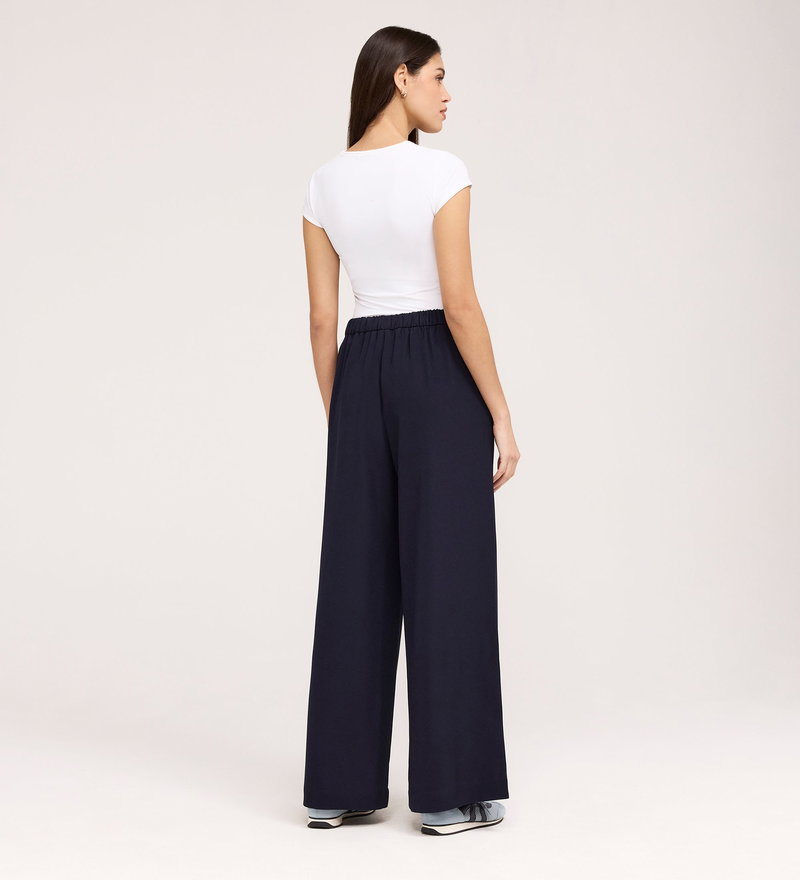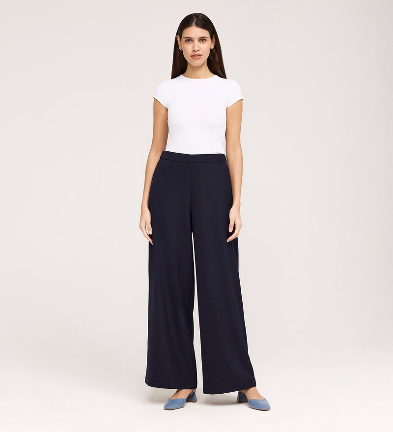 Nat Navy Gaberdine Twill Wide Leg Trousers