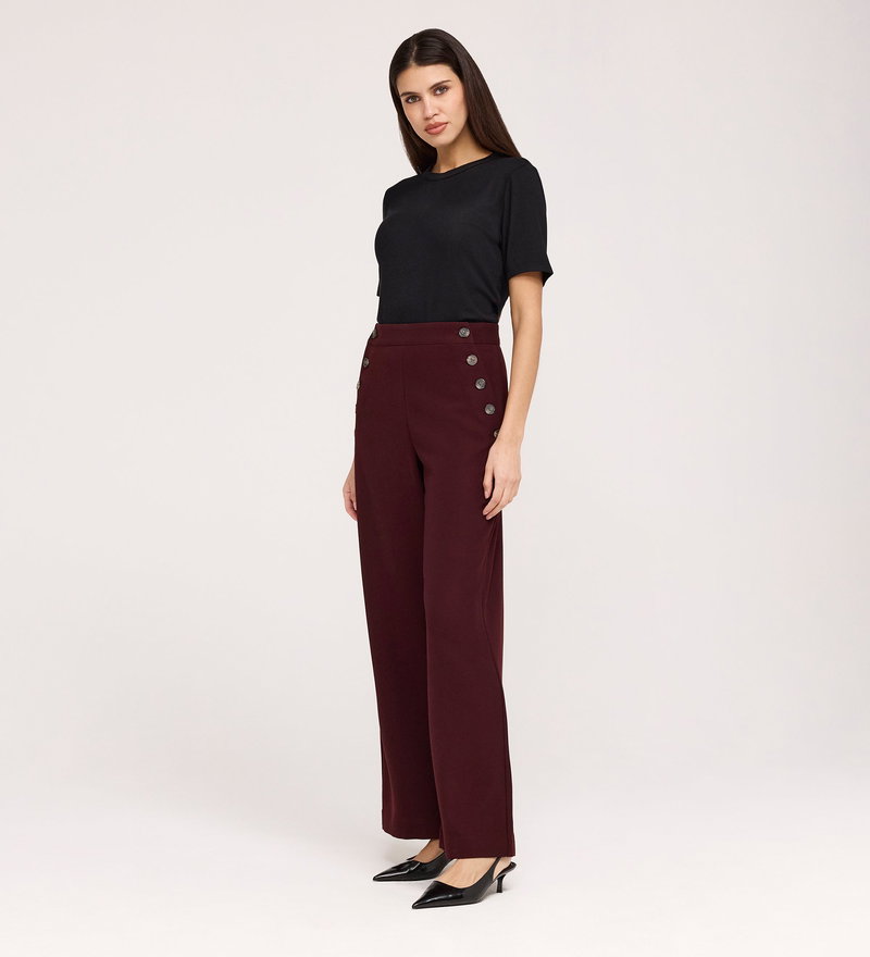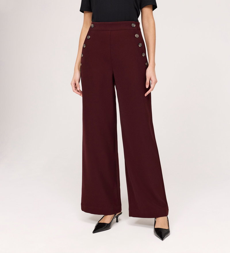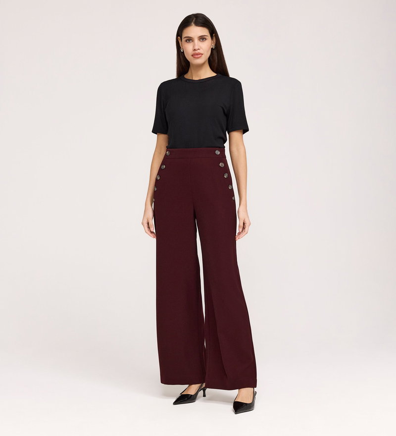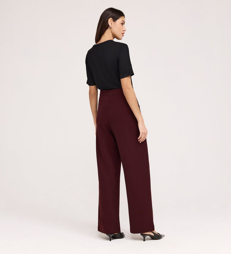 Nellie Burgundy Gaberdine Twill Wide Leg Trousers