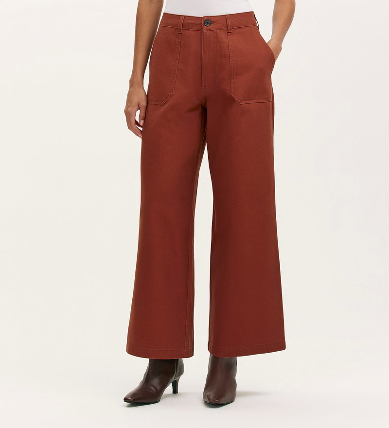 Olive Terracotta Canvas Wide Leg Trousers