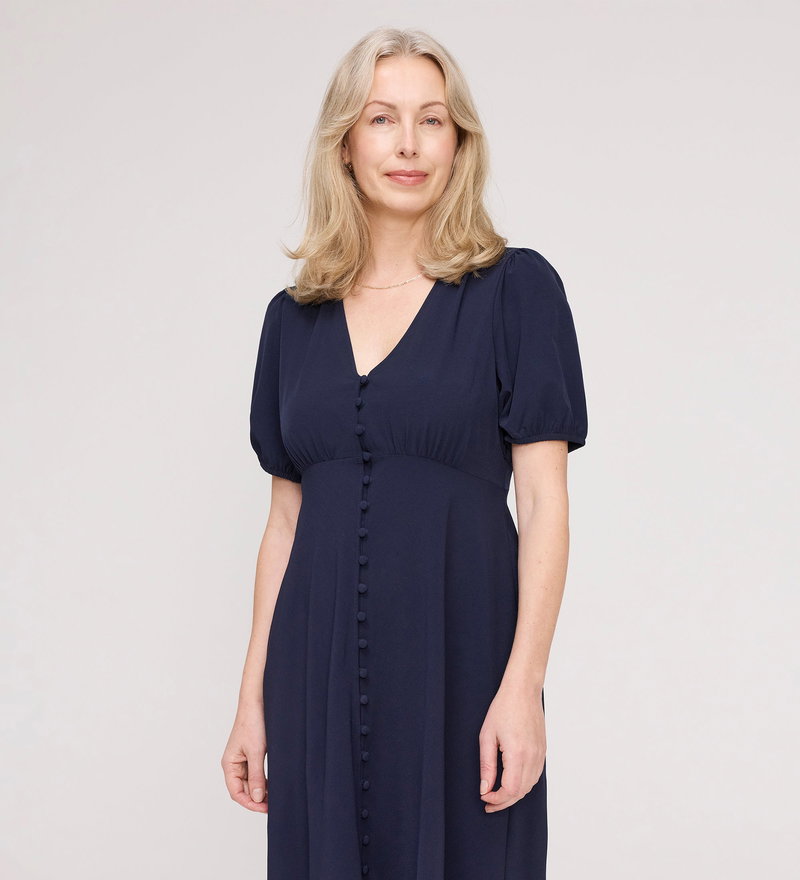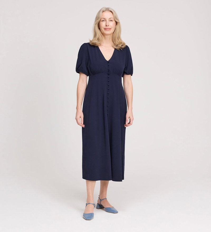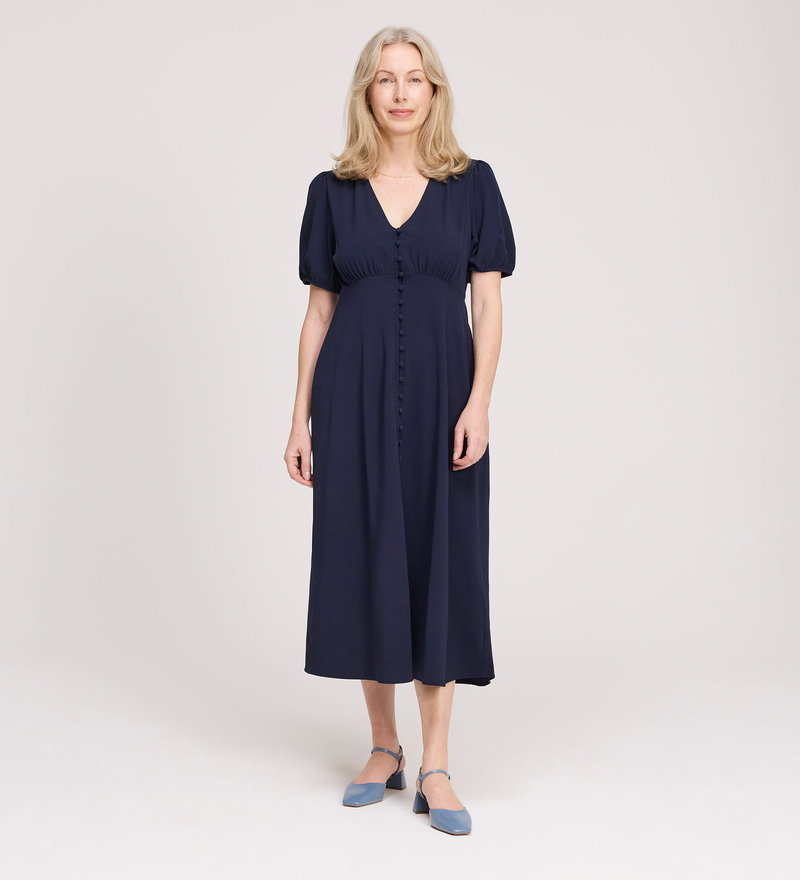 Robyn Navy Button Through Midi Dress
