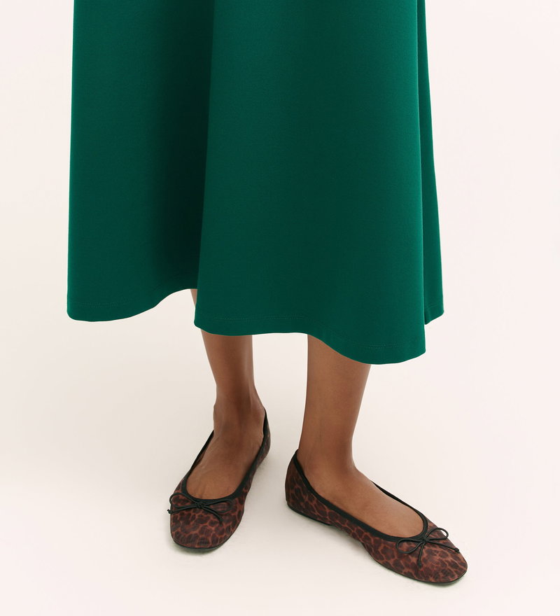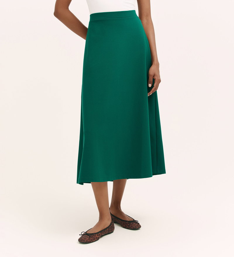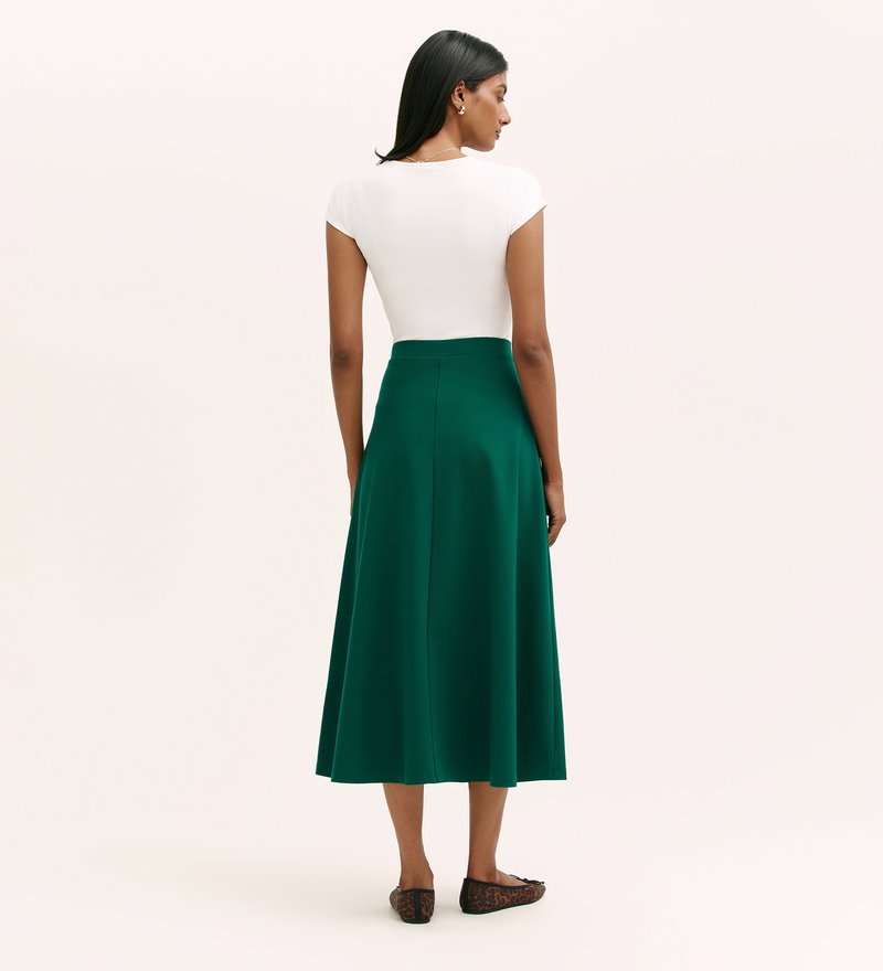 Ruth Bottle Green Ponte Jersey Midi Skirt