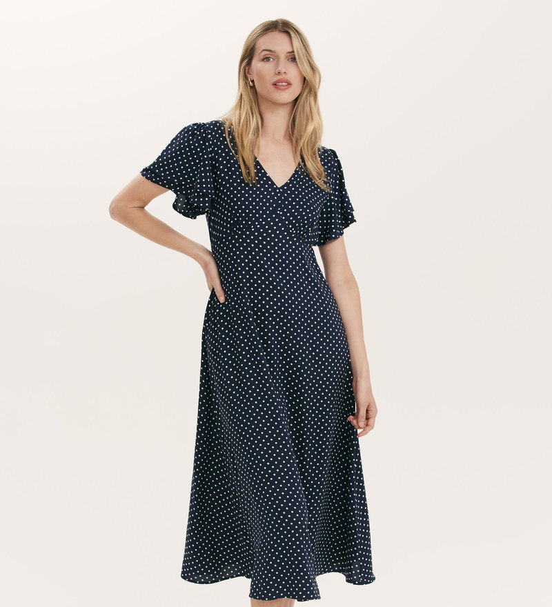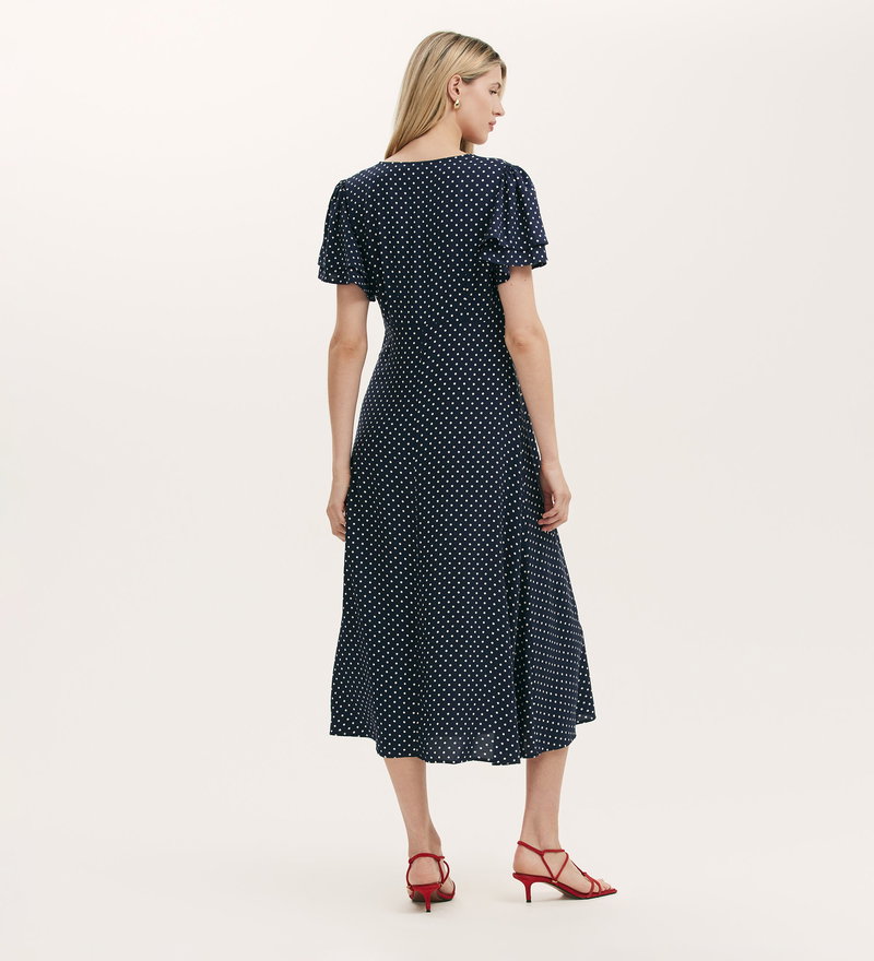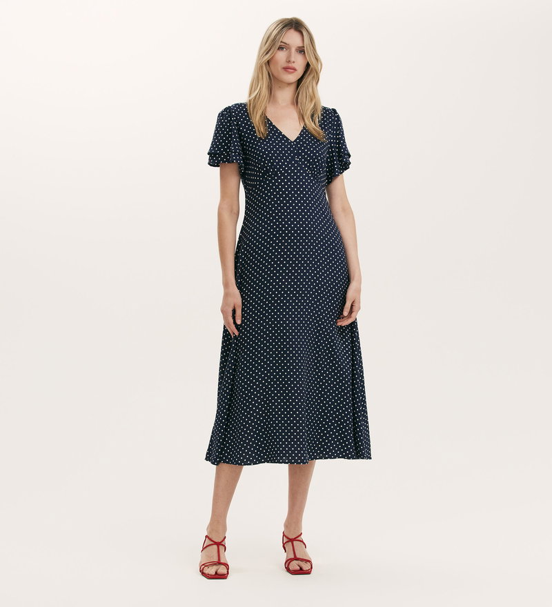 Saskia Navy Polka Dot Midi Tea Dress