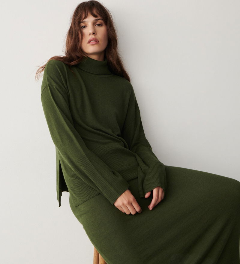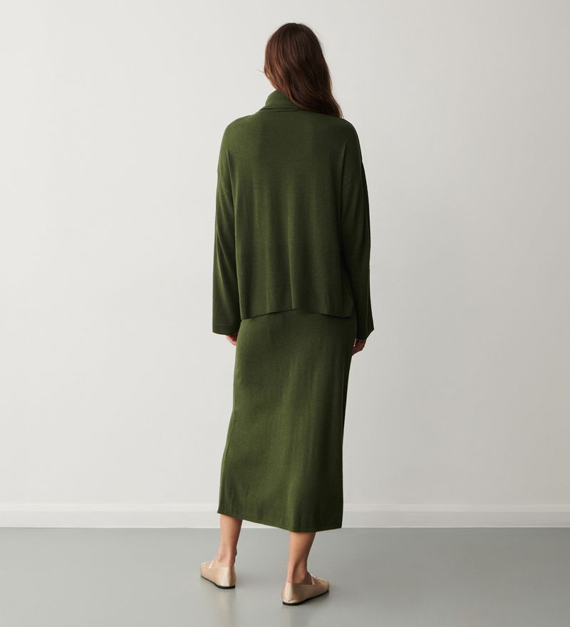 A much-loved addition to our knitwear range, Thea is a midi skirt that will keep you warm in style. With an elasticated, ribbed waist band she sits comfortably on the hips. Mix and match with our Sienna Roll Neck Jumper for the full look.