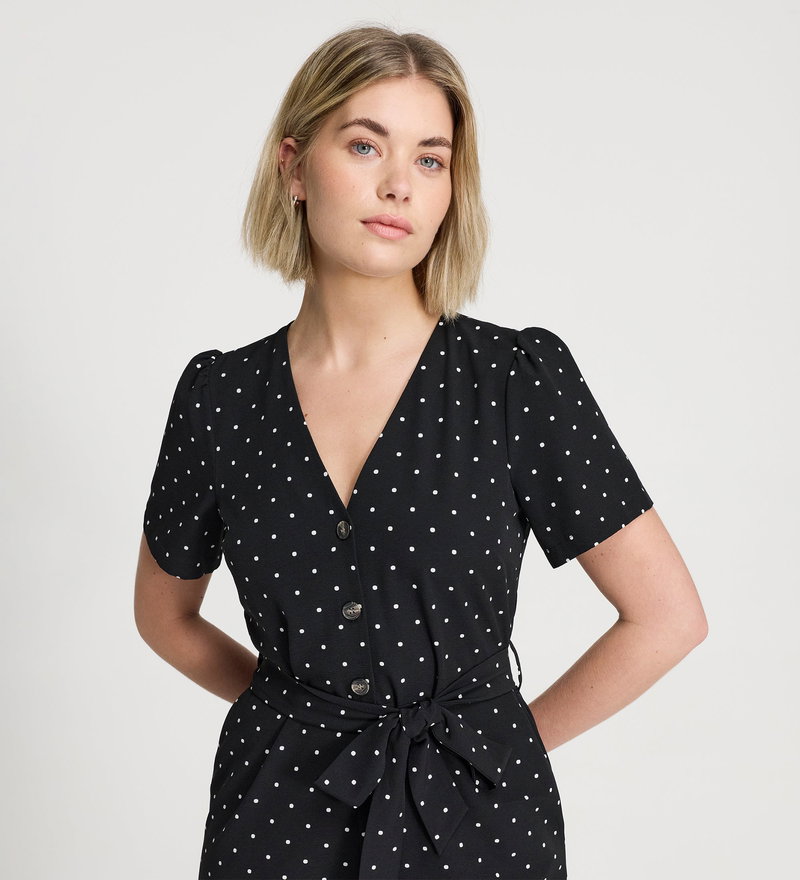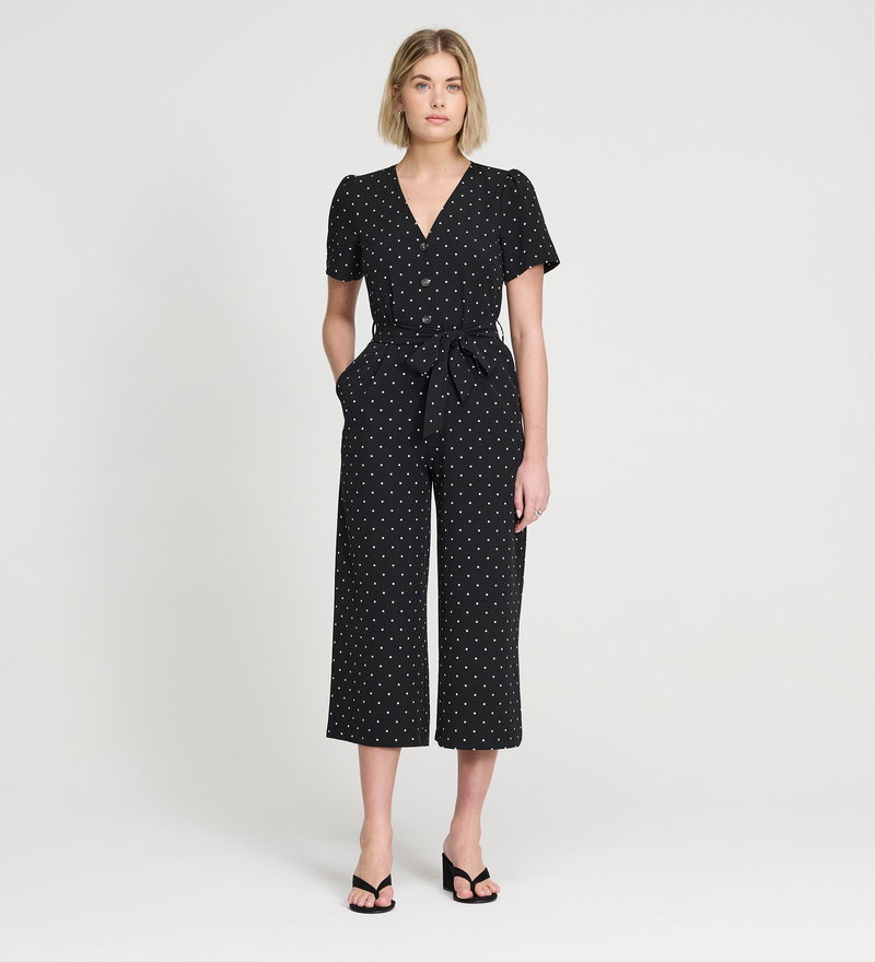 Uma Black Polka Dot Belted Wide Leg Jumpsuit
