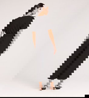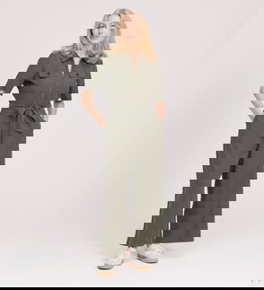Uma Jumpsuit offers a fresh take on one piece dressing, blending a sharp, utilitarian feel with a relaxed silhouette. It features a classic V neckline and a button through front that fastens to the waist seam, where an adjustable tie waist detail allows you to define your shape. The short sleeves and wide leg cut create a balanced look, while the cropped length makes it the perfect partner for everything from casual trainers to a block heel.