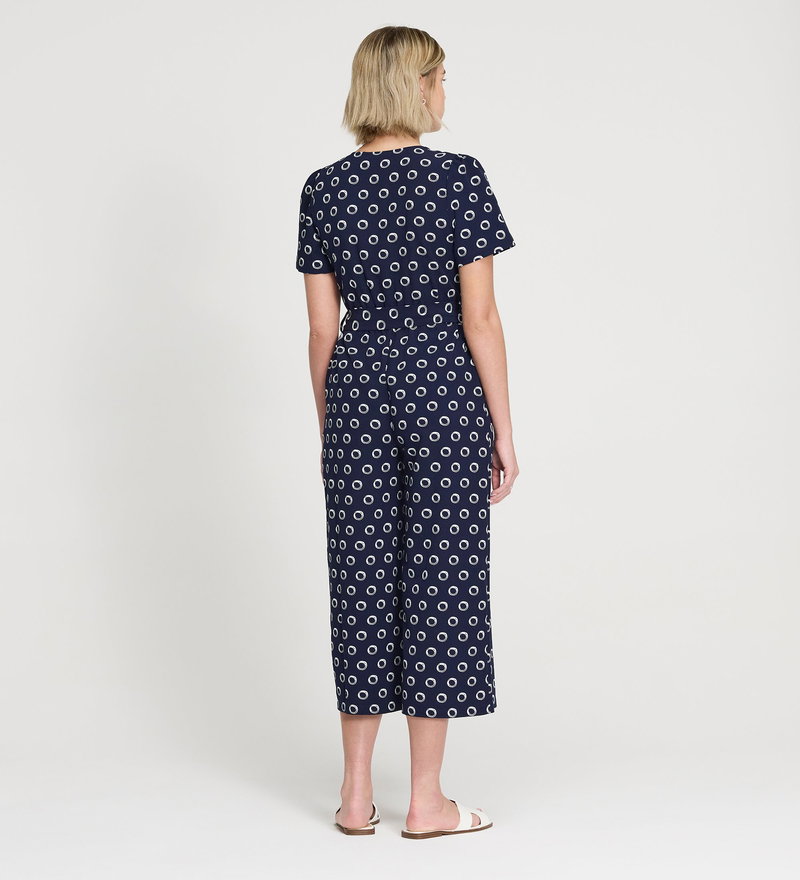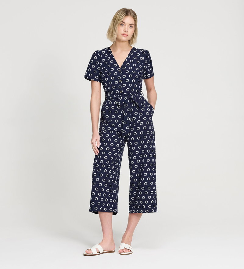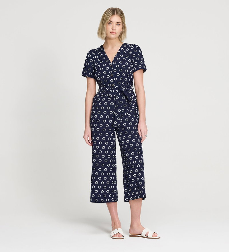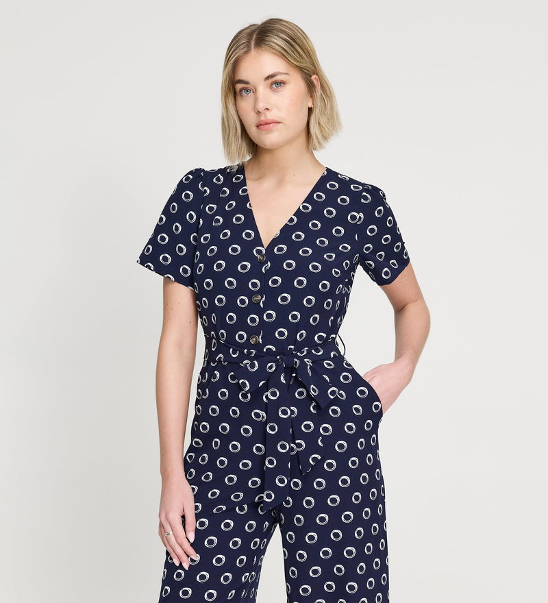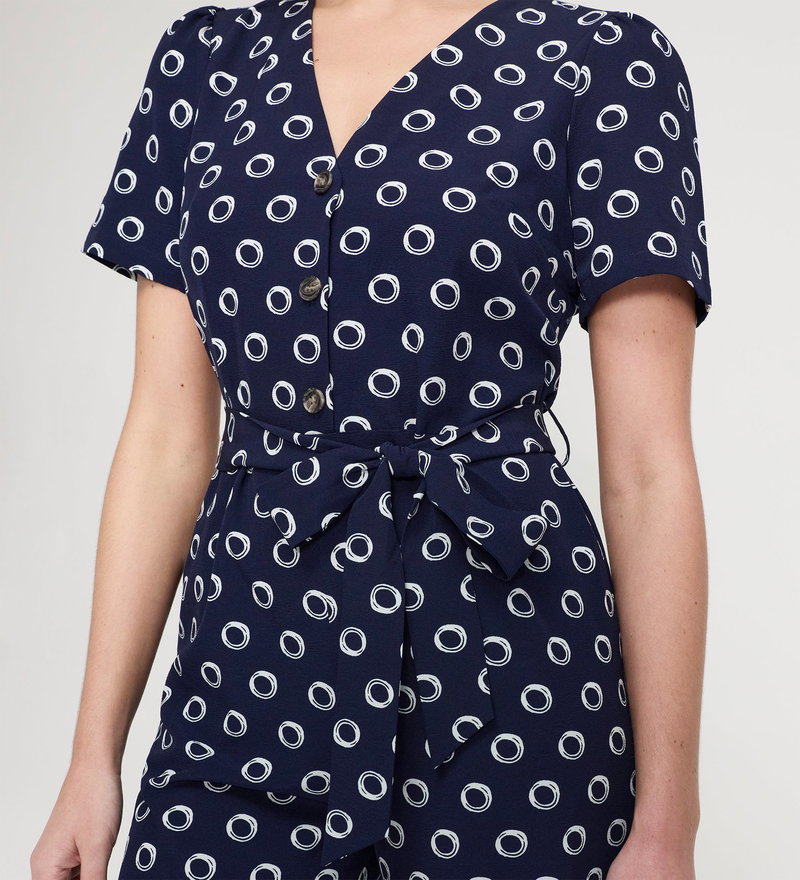 Uma Navy Polka Dot Belted Wide Leg Jumpsuit