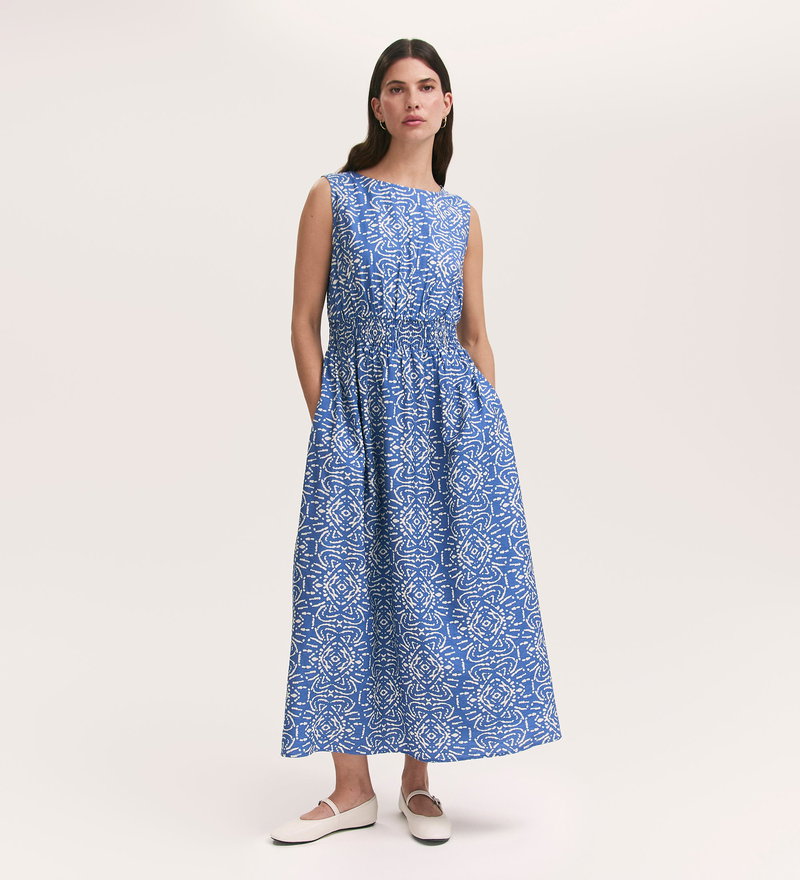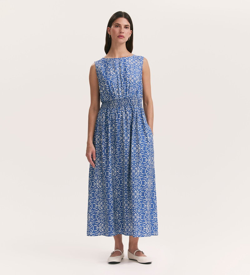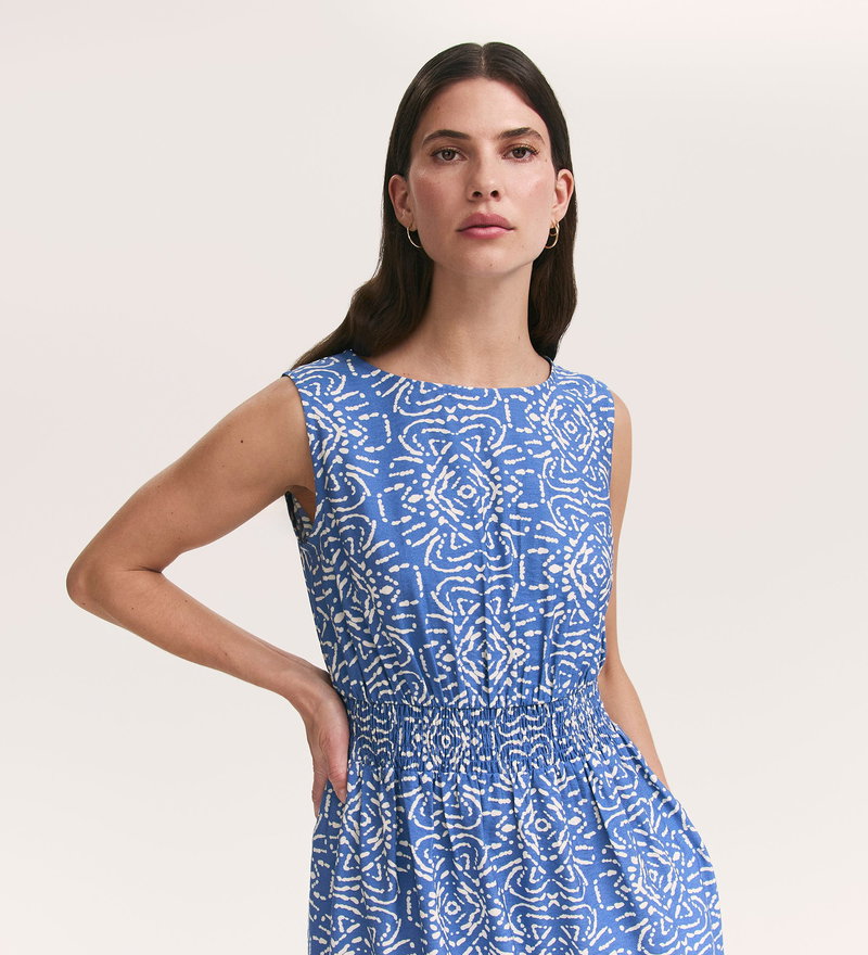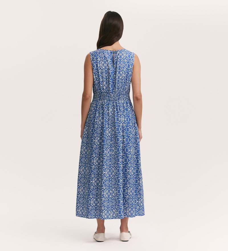Willow Blue Batik Sleeveless Midi Dress