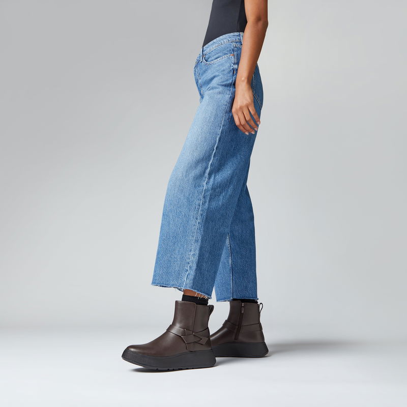 Uplift almost any outfit with these beautiful stacked boots. We've set a clean upper - the perfect foil for a 'folded knot' strap - on a chunky, yet lightweight sole. Crafted in smooth leather, with minimal seaming, and cut at a flattering height above the ankle. Pull tabs and a full inside zip give you easy on/off. On a flatform-version of our Microwobbleboard™ midsole for amazing all-day comfort (and a little extra height). Timeless boots, with sleek refined detail, you'll wear on repeat.