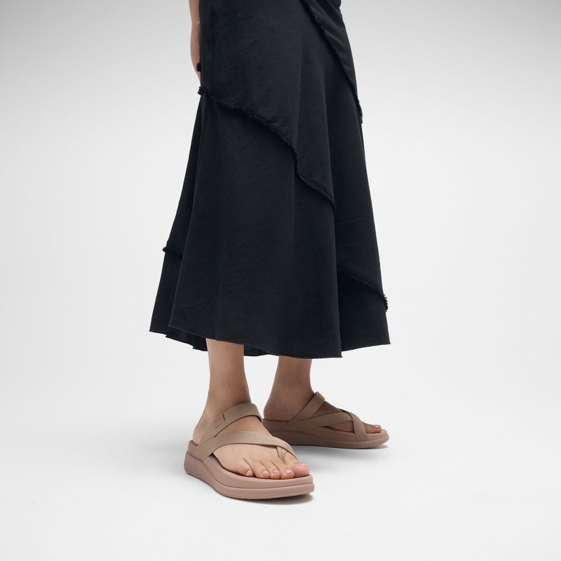 With our F-Mode Go we've created a simple streamlined sandal infused with our signature comfort. Chunky soled, featuring a modern ‘stripped-back' design and fluid lines. This three-strap 'sling' style is a classic FitFlop silhouette. In soft light sporty-webbing, fun and summery for weekends/vacations/around town. Naked footbeds give the original feel of our first sandals - your feet directly on our cushioned Microwobbleboard™ midsole (in an ultra-light/flexible two-layer version). Essential for everyone.