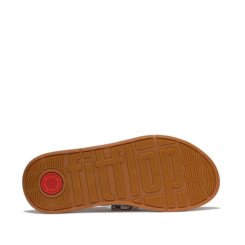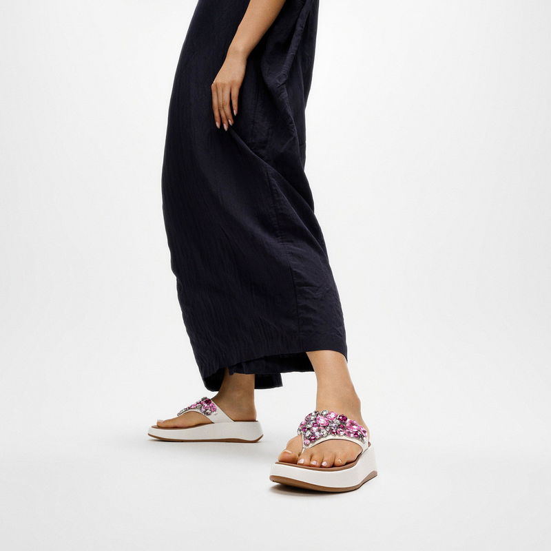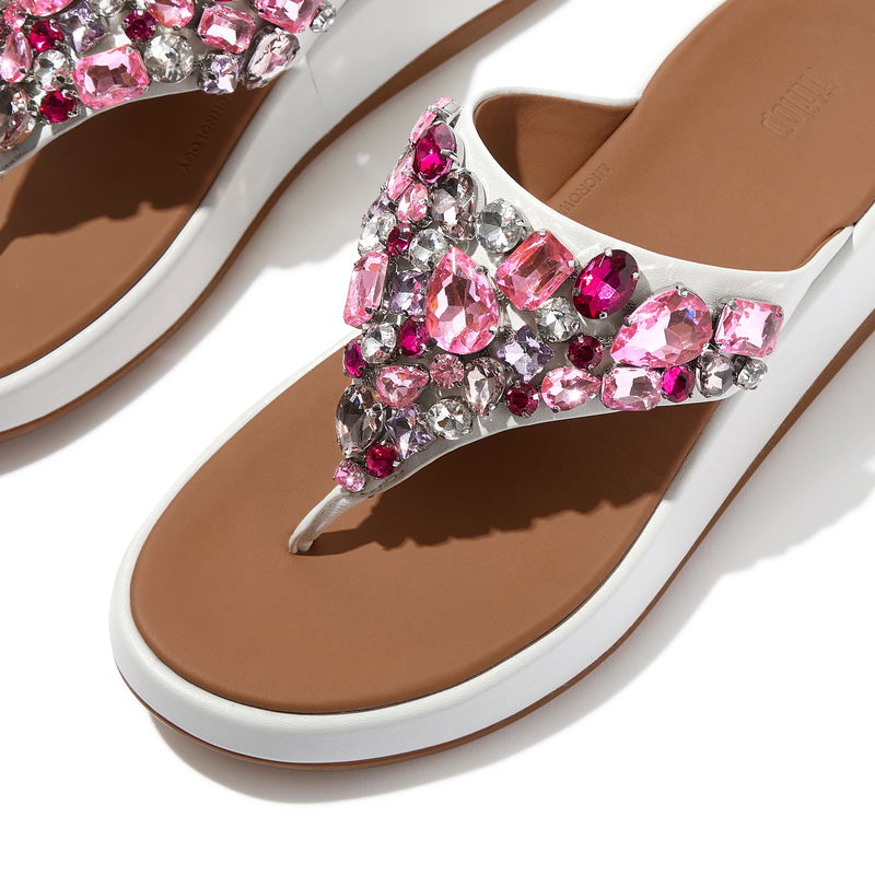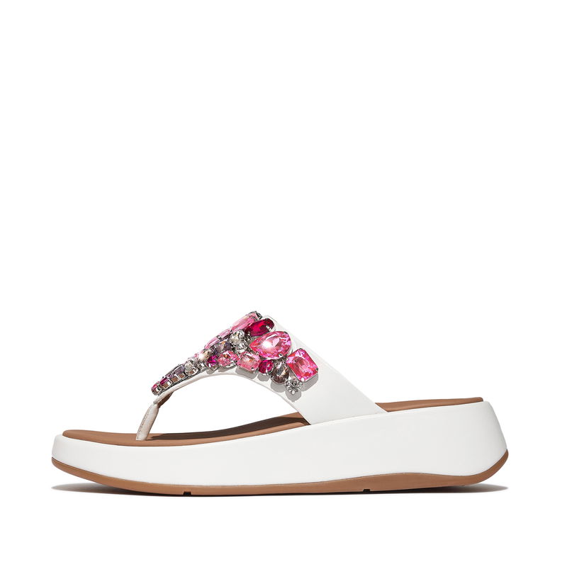 F-MODE Jewel-Deluxe Leather Flatform Toe-Post Sandals