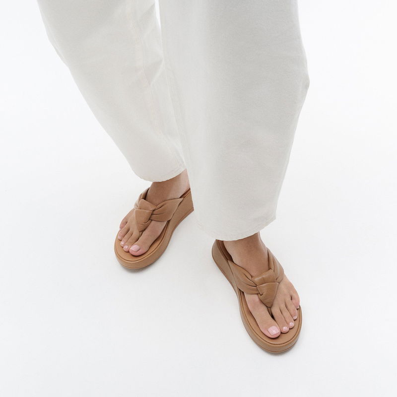 These sandals are elevated in every sense. A sculptural knotted strap is set on a chunky, yet light, sole. Lightly padded, and crafted in luxe butter-soft nappa leather with some shine (that not only twists and folds beautifully but feels amazing against your feet). Soles wrapped in premium leather and leather footbeds add to the refined feel. On a flatform-version of our unbeatably comfortable Microwobbleboard™ midsole for a little extra height. Gorgeous with almost everything in your wardrobe.