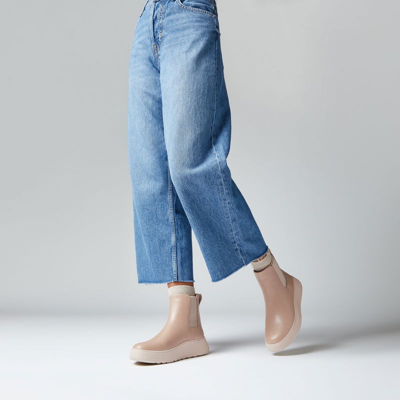 An elevated take on an icon. We've brought a closet staple up to date - setting a classic Chelsea boot upper on a superchunky (yet lightweight) sole. Clean. Contemporary. Crafted in smooth high-quality leather, with minimal seaming, and simple lines that complement almost any outfit. Thick stretch panels on both sides and pull tabs ensure easy on/off. Featuring a flatform-version of our Microwobbleboard™ midsole to deliver unbeatable all-day comfort (and a little extra height).