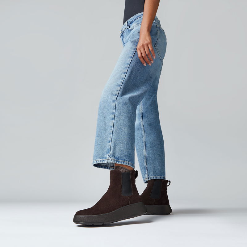 An elevated take on an icon. We've brought a closet staple up to date - setting a classic Chelsea boot upper on a superchunky (yet lightweight) sole. Clean. Contemporary. Crafted in soft rich suede, with minimal seaming, and simple lines that complement almost any outfit. Thick stretch panels on both sides and pull tabs ensure easy on/off. Featuring a flatform-version of our Microwobbleboard™ midsole to deliver unbeatable all-day comfort (and a little extra height).