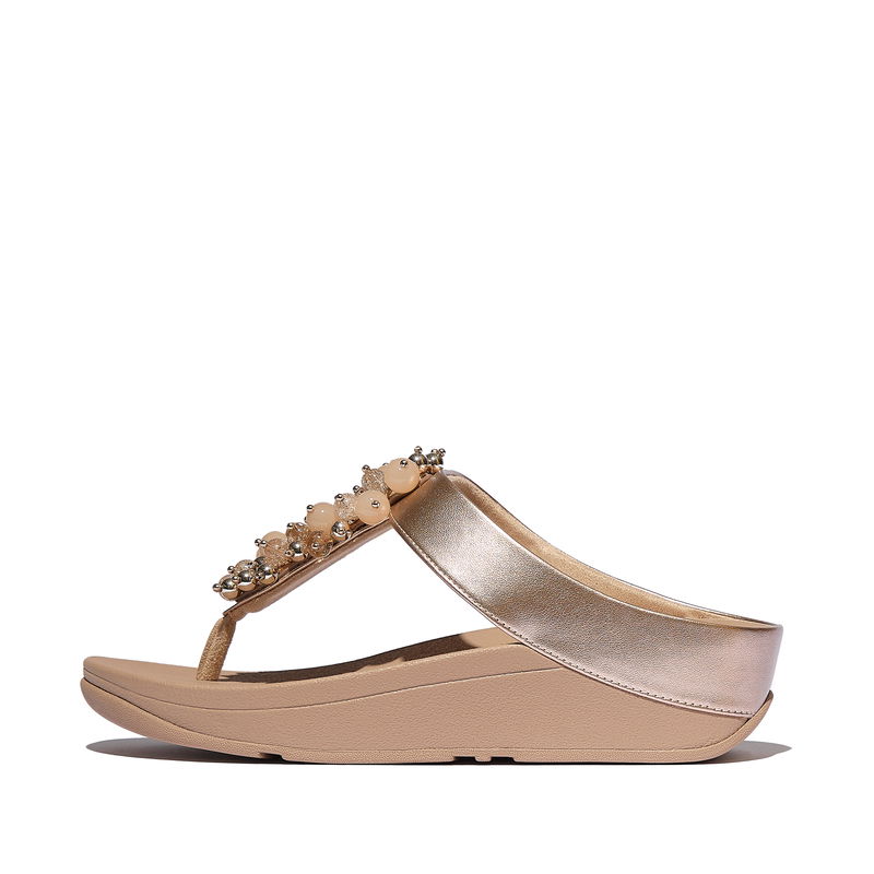 Comfortable can be seriously covetable. Case in point: the Fino, the brand's slinky, foot-flattering sandals. Lightly padded, with a soft microfiber toe post. On the Microwobbleboard™ midsoles for unbeatable all-day cushioning. This season crafted in soft, metallic, pearlized faux-leather. Featuring a central strap swathed in glossy glittering 'bauble-beads' (in a mix of opaque, clear and mirror-finished). Slip on for daytime glitz, parties, evenings out, or any time you want to feel fabulous.