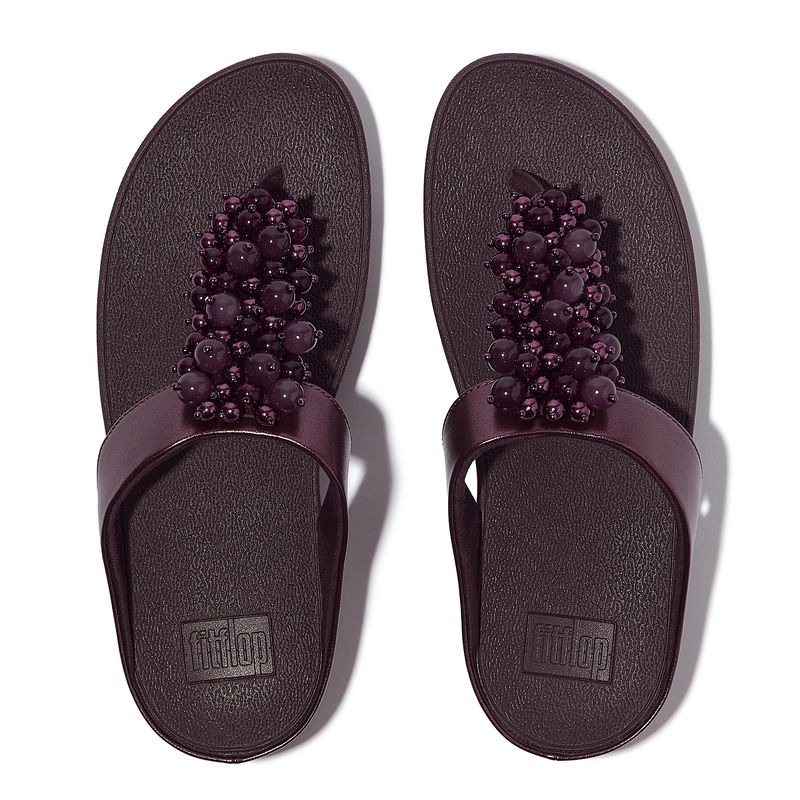 FINO Bauble-Bead Toe-Post Sandals Faux Leather
