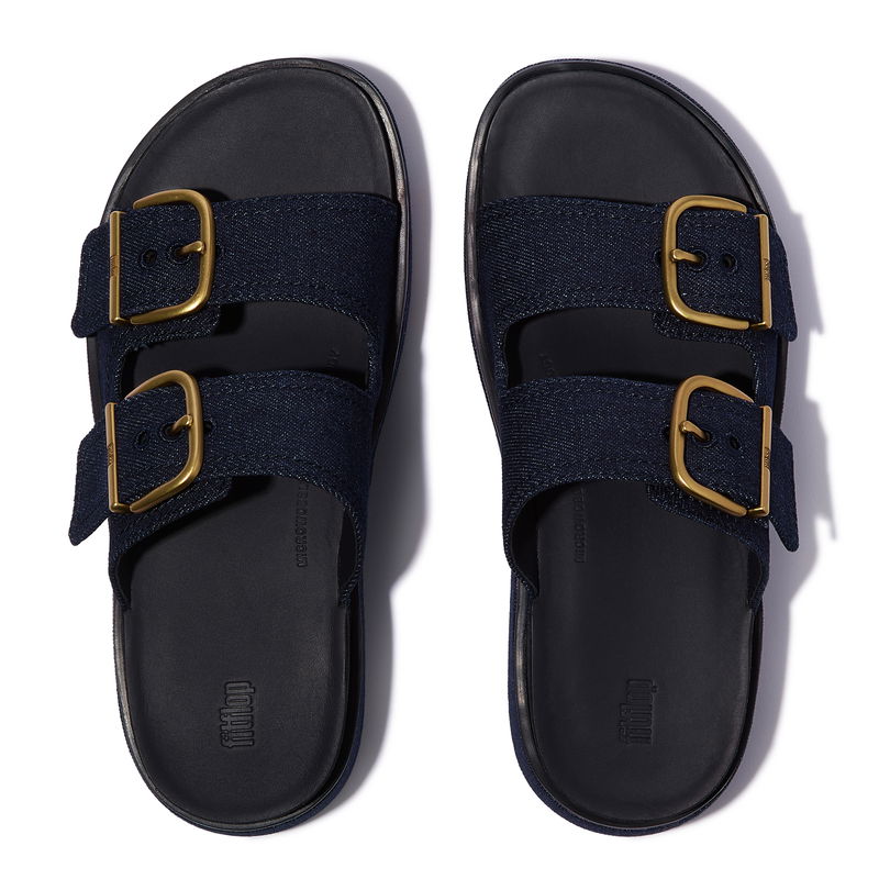 Slides that make a statement (while simultaneously delivering serious comfort credentials). Modeled on the brand's much-loved Gen-FF sandals, this pair is elevated by a chunky, flatform sole. Dark-indigo denim wraps around the outside, and creates the two wide front straps that can be adjusted using the gold-toned buckle fastenings for a secure, personalized fit. And working behind the scenes?