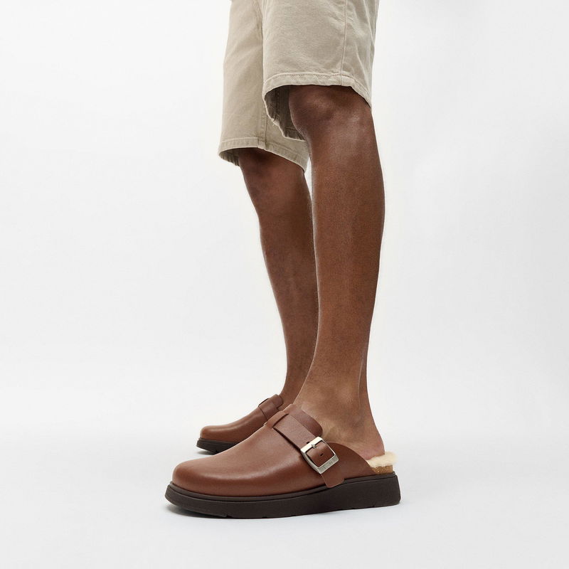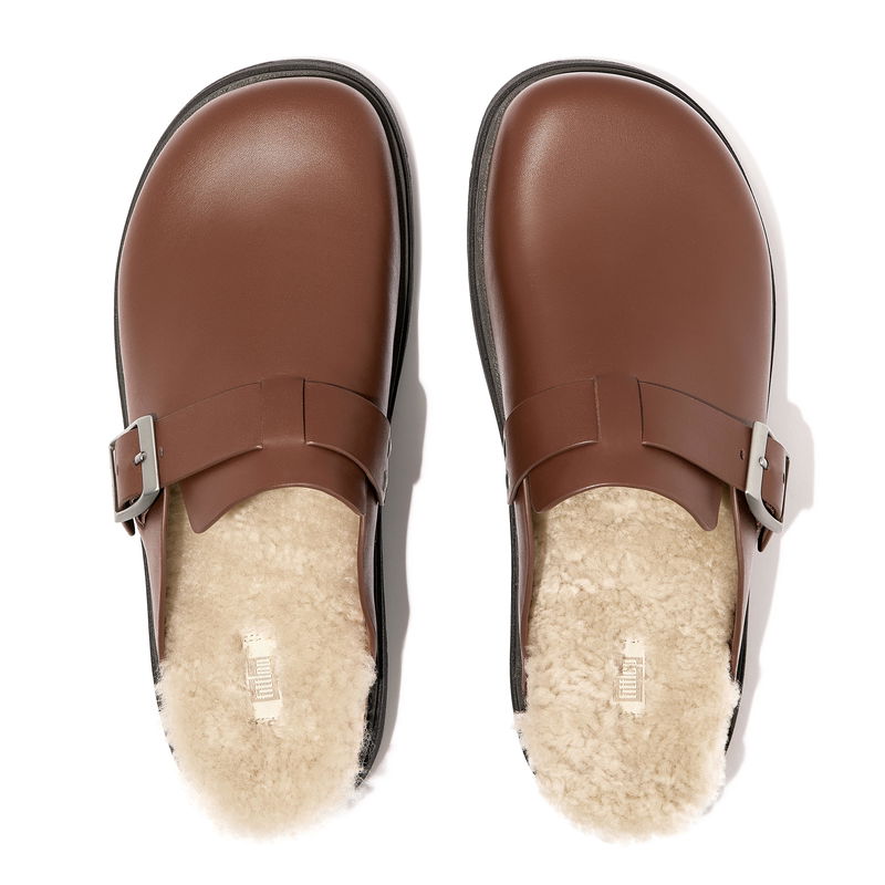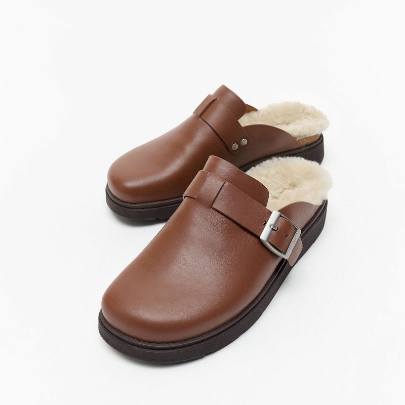 Our next-generation easy slip-ons combine refined modern-casual style with unbeatable underfoot comfort. A sleek one-piece leather upper is set on a chunky sole. Here with a footbed lined in fluffy curly shearling - warm thermo-regulating ultra-soft under your feet - for extra coziness. A leather buckle strap and leather upper lining/welt detail add to the elevated feel. The curved topline is shaped to ease movement. On our cushioning Microwobbleboard™ midsole. Wear indoors/outdoors perfect for cooler days.
