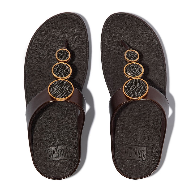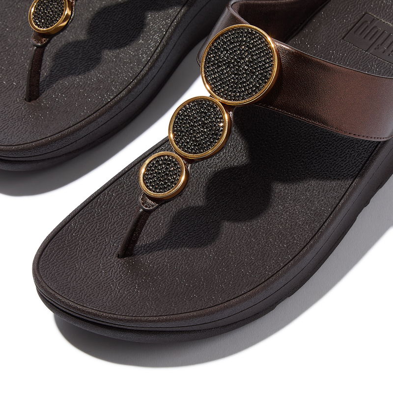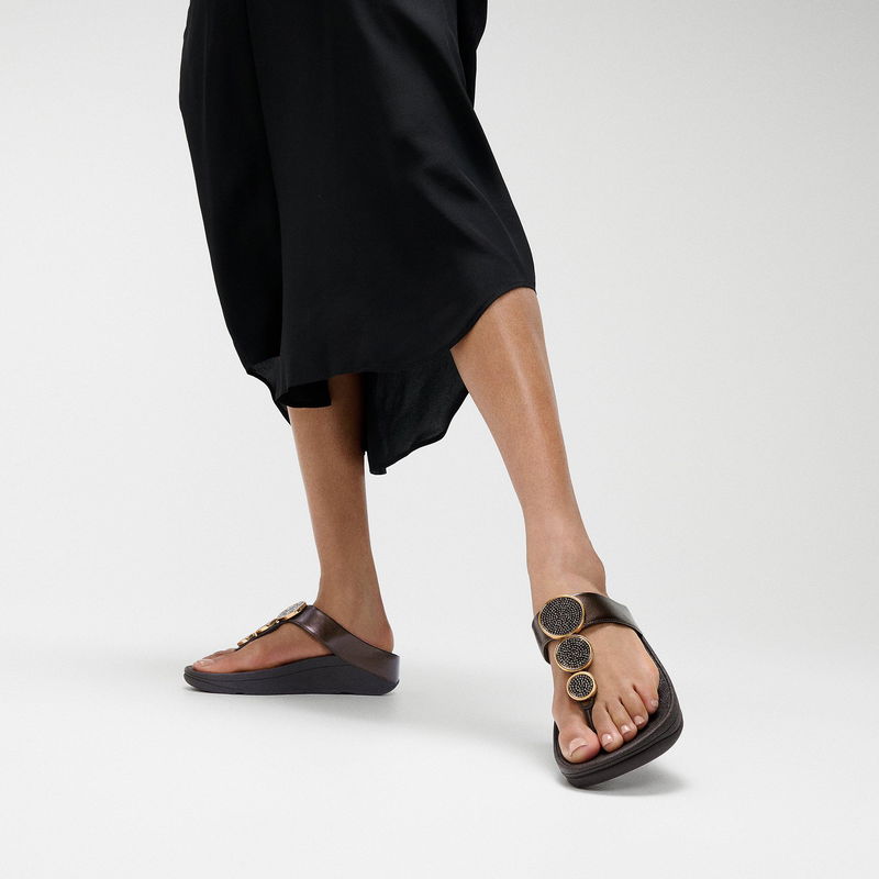 HALO Bead-Circle Metallic Toe-Post Sandals Faux Leather Pu