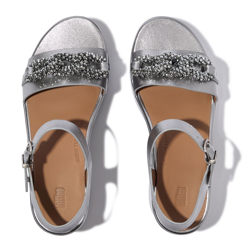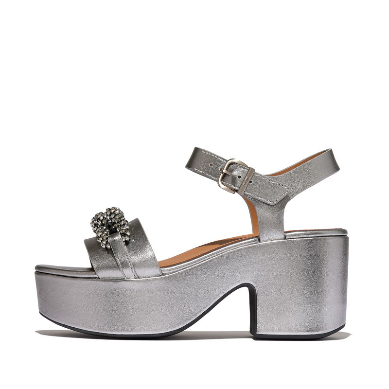 PLATFFORMS Beaded-Chain Leather Heeled Ankle-Strap Sandals