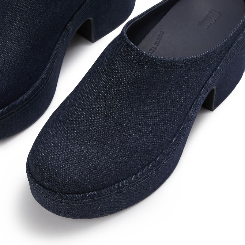 Slip on and step up. These heeled mules bring the effortless style of your denim drawer to your footwear rotation. Showcasing the best of easy, minimalist style, the PLATFFORMS combine the relaxed appeal of classic, indigo denim with a statement-making platform sole.