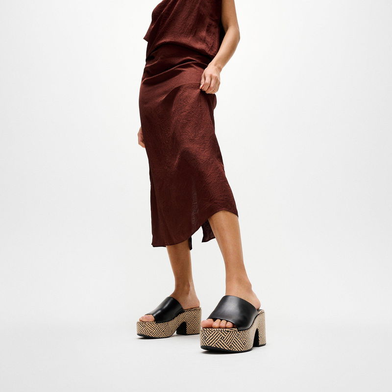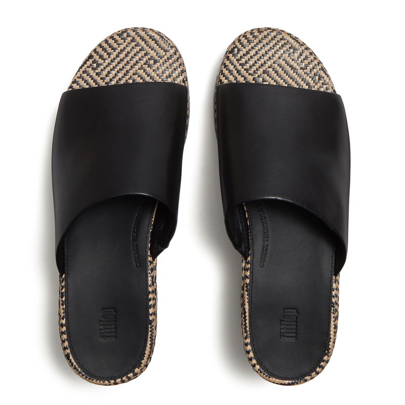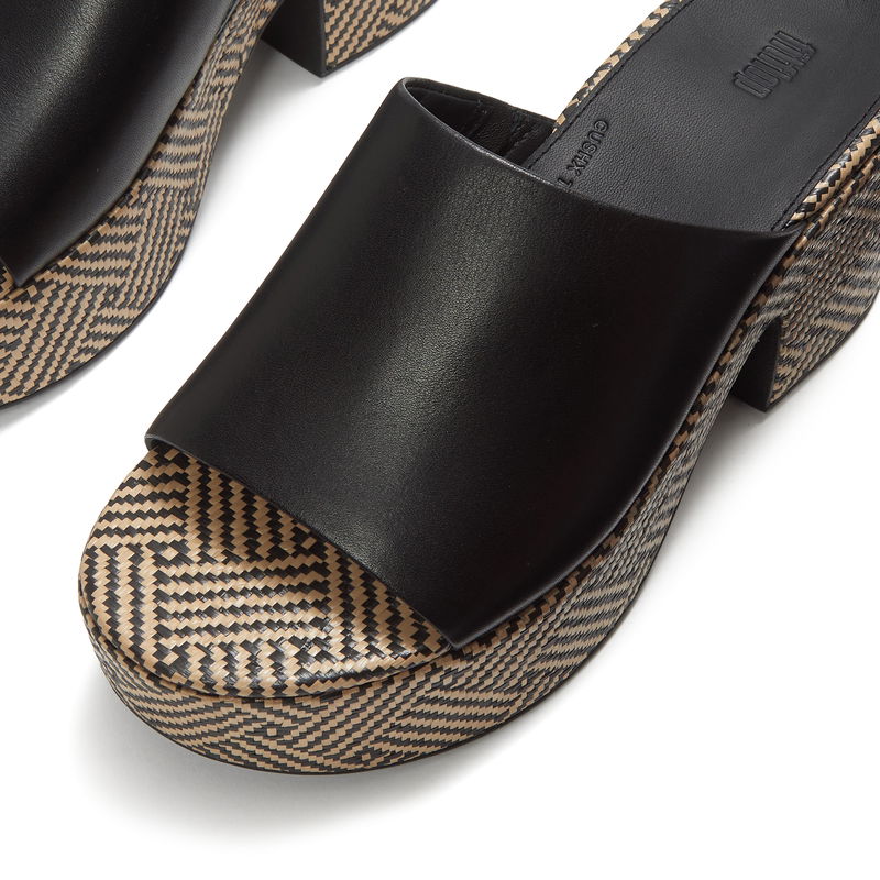 Platfforms Graphic-Weave Leather Heeled Slides