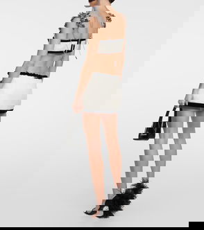 So cool and classic in a corset-inspired silhouette, this stunning crop top is featured in an off-the-shoulder design with defined bottom hem, hook-front closure, and removable shoulder straps for multiple ways to wear.