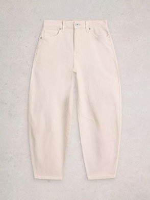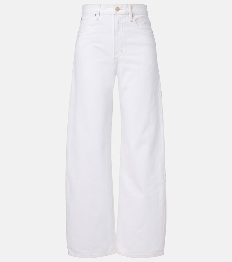 Frame creates iconico denim designs using fair manufacturing practices and sustainably sourced materials. The Bow jeans are cut from white denim to a barrel-leg silhouette with contrasting stitch details and gold-toned hardware.