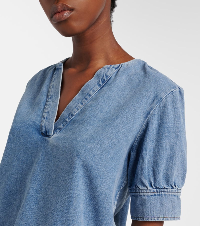 Frame creates iconic denim designs using fair manufacturing practices and sustainably sourced materials. This top is crafted from washed blue denim and boasts a V-neckline and loose sleeves for a laid-back style.
