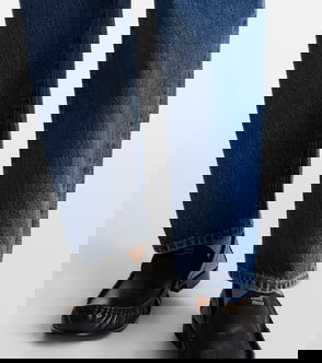 Straight-leg jeans, Denim, High-rise cut, Multipockets, Concealed button and zip fastening at side, Non-stretchy fabric, Mid-weight fabric.