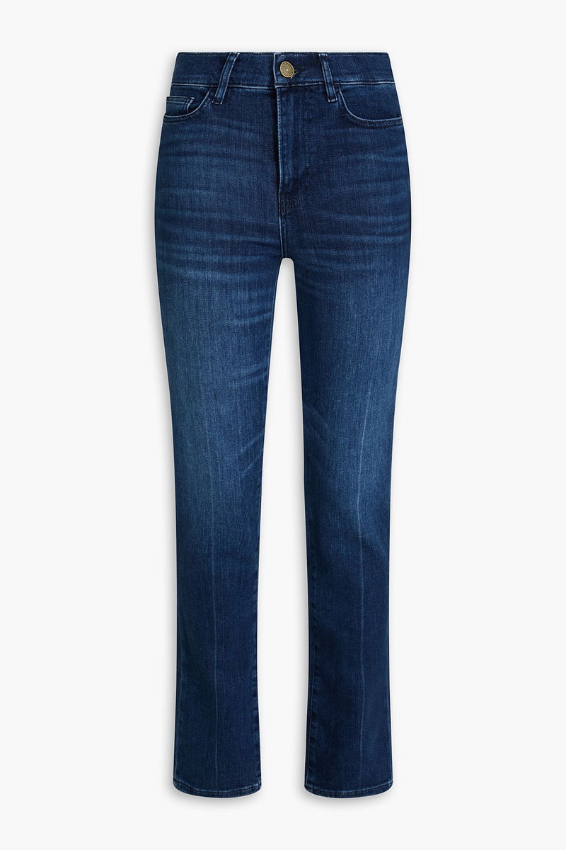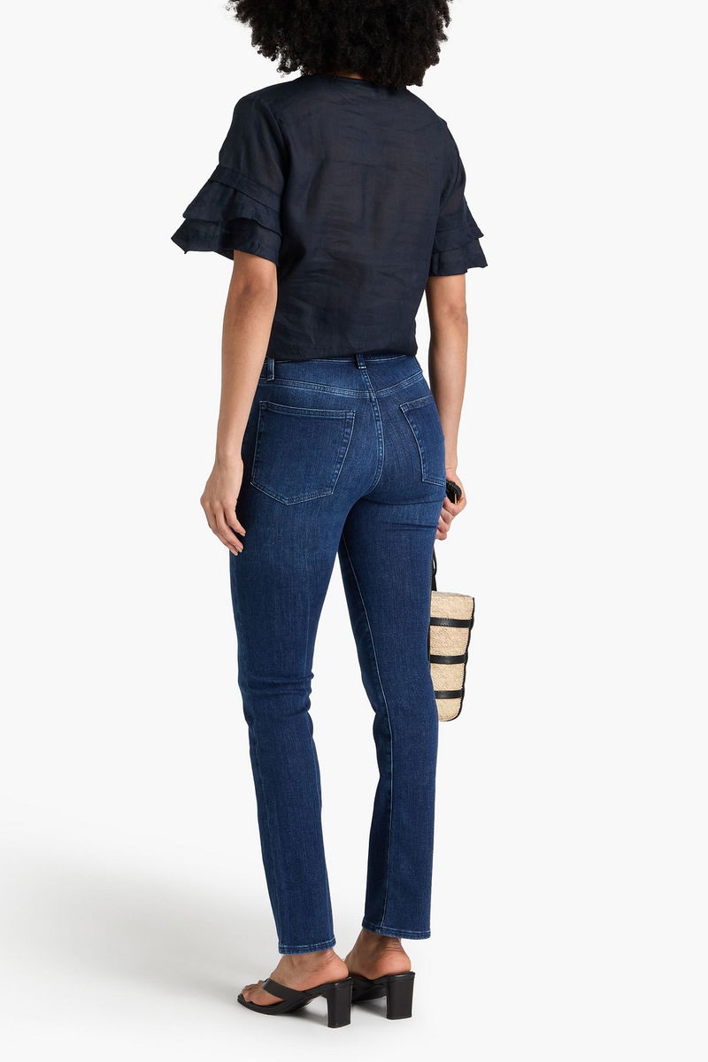 Straight-leg jeans, Denim, Belt loops, High-rise cut, Five pockets, Button and concealed zip fastening at front, Mid-weight, stretchy fabric.
