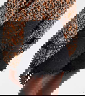 Shorts, Leather, Belt loops, High-rise cut, Two front slant pockets, Two back patch pockets, Button and concealed zip fastening at front, Supple, non-stretchy leather, Mid-weight fabric.