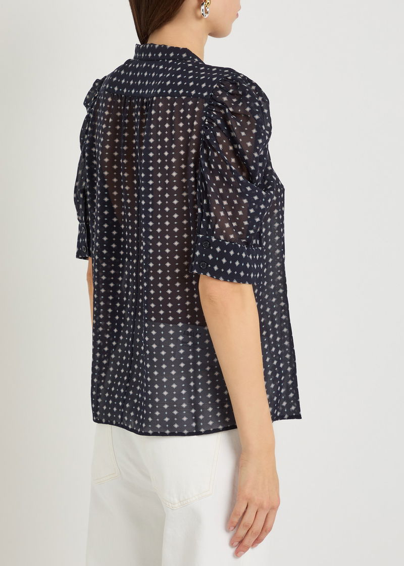 Frame semi-sheer silk-chiffon blouse.