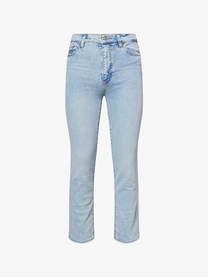 FRAME's 'Reboot Crop' jeans are cut from the brand's signature stretch-denim in a high-rise, flared shape that'll contour and complement your figure. Made with lots of recycled-cotton, they have cropped legs and come in a fresh white wash.