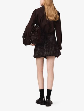 Dress, Silk crepe de chine, Stretch-ponte, Paneled, Ruffled trims, Faux leather trims, Gathered, Concealed hook and zip fastening at back, Ties at back, Non-stretchy fabric with stretchy panels, Mid-weight fabric.