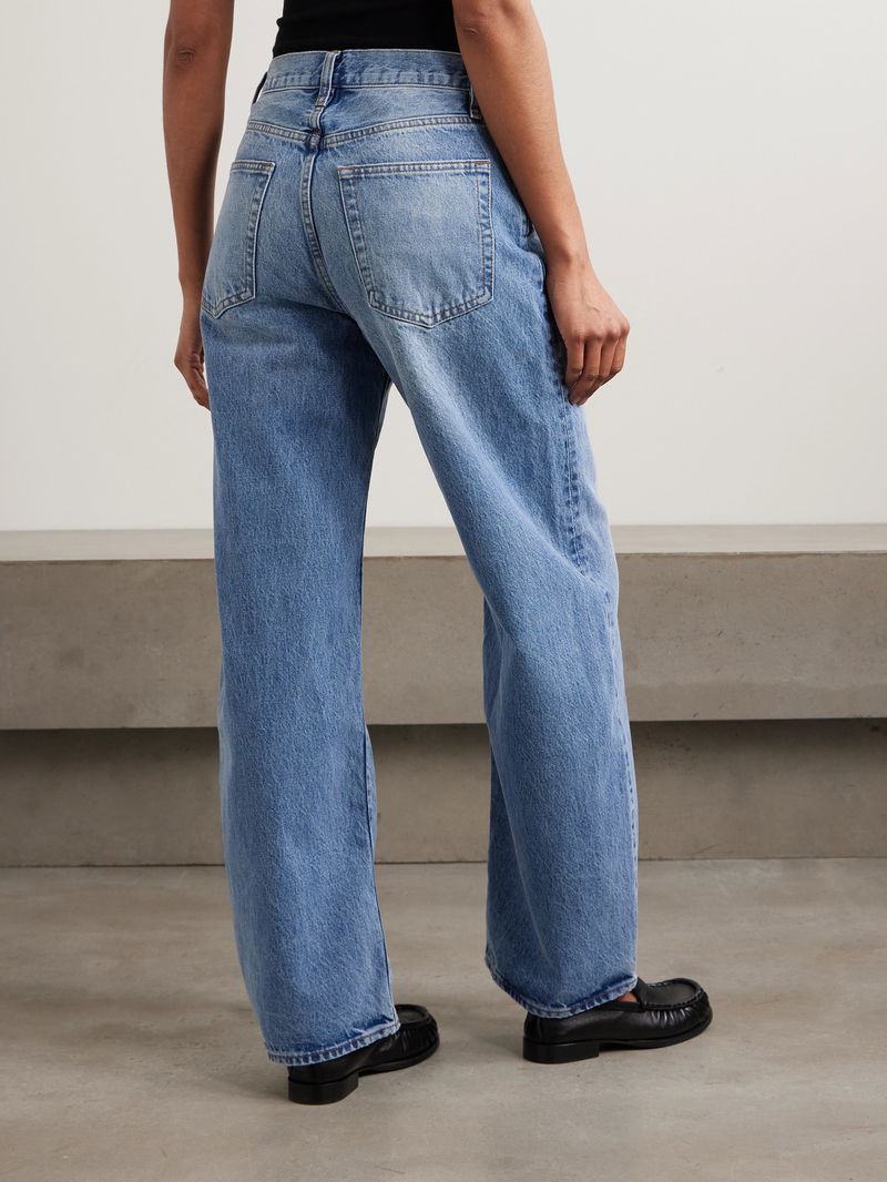 FRAME's 'The Bow' jeans are cut from a rigid denim that's been chosen to neatly hold the shape of the curved legs.