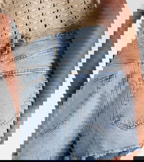 Made from light-wash denim, this pair features raw hems, which lend it a worn-in, vintage feel.
