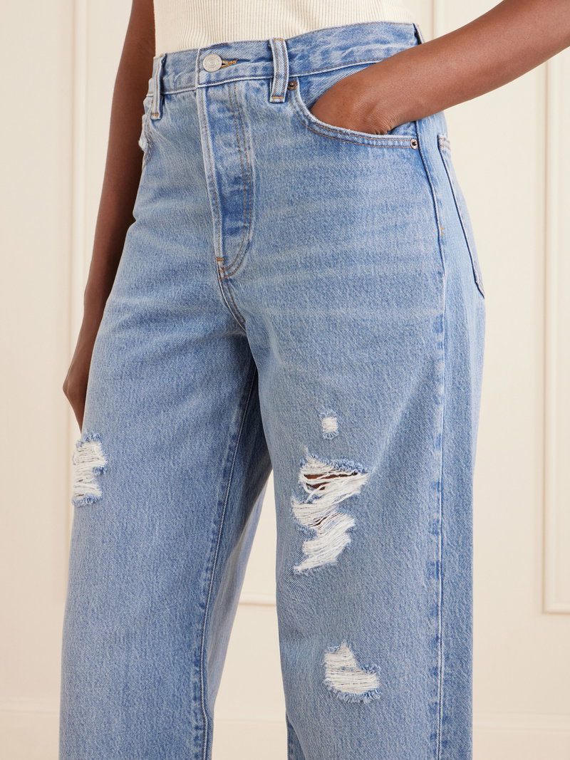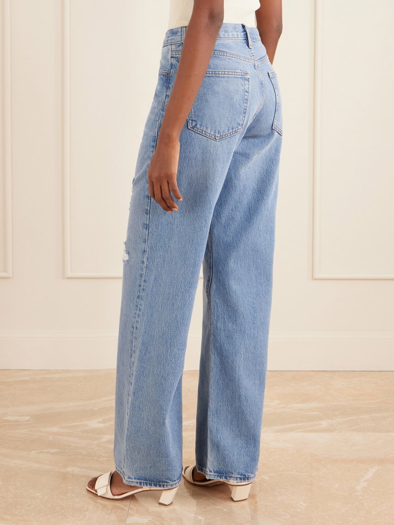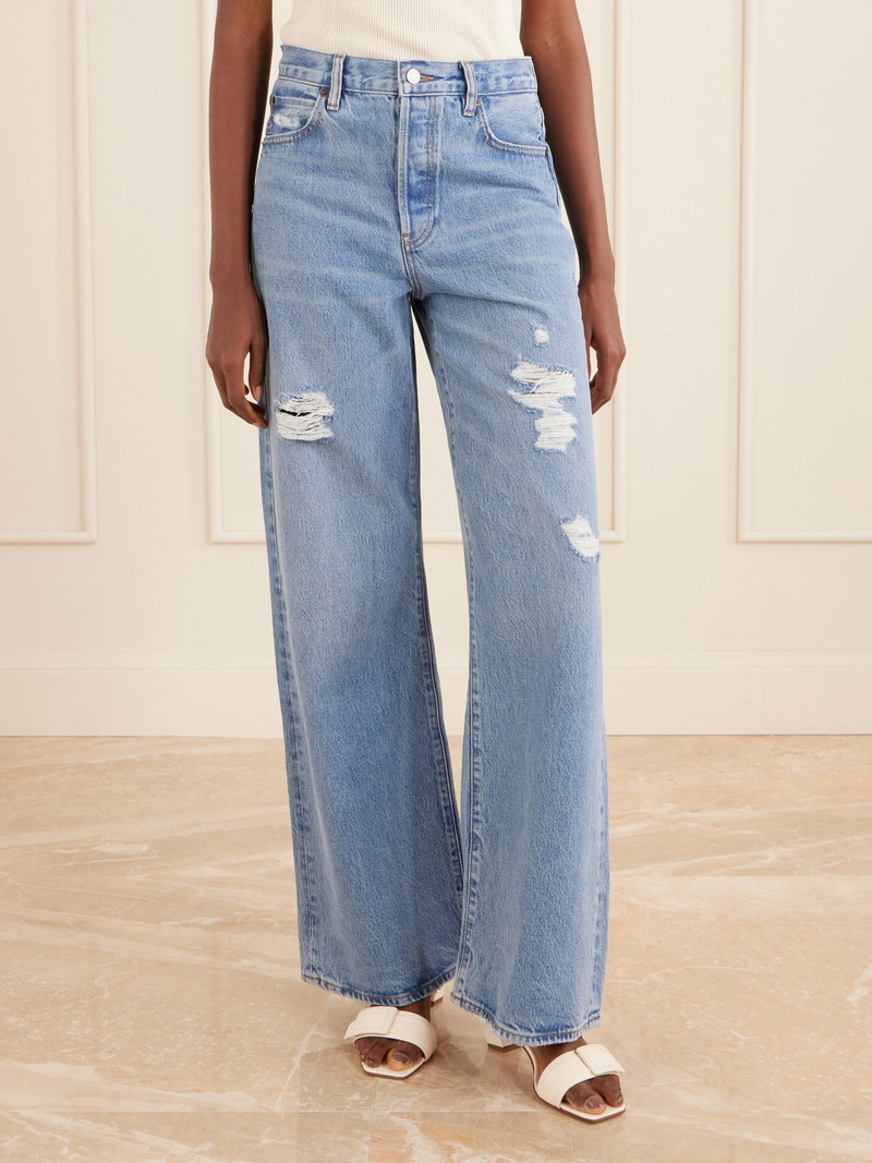 FRAME's jeans are cut with a relaxed, wide-leg silhouette and distressed detailing for a lived-in feel. Designed to sit comfortably at the waist, they fall with a loose, fluid shape.