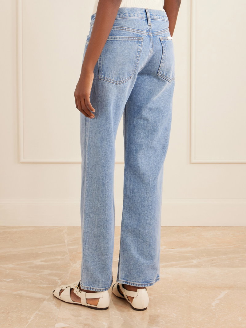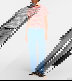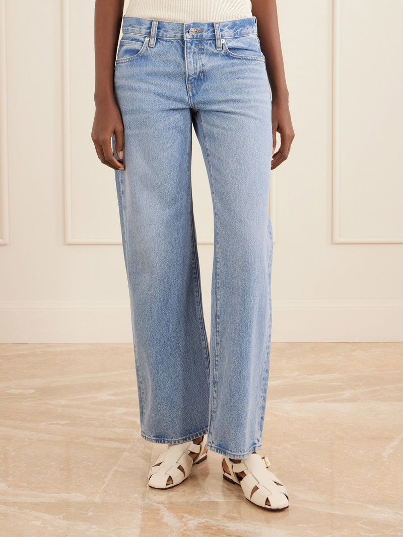 FRAME's jeans are cut for a slim, elongated fit with a clean, flattering silhouette. Designed with a mid-rise waist and a straight leg that subtly flares at the hem, they fall smoothly through the body for a lengthened effect.